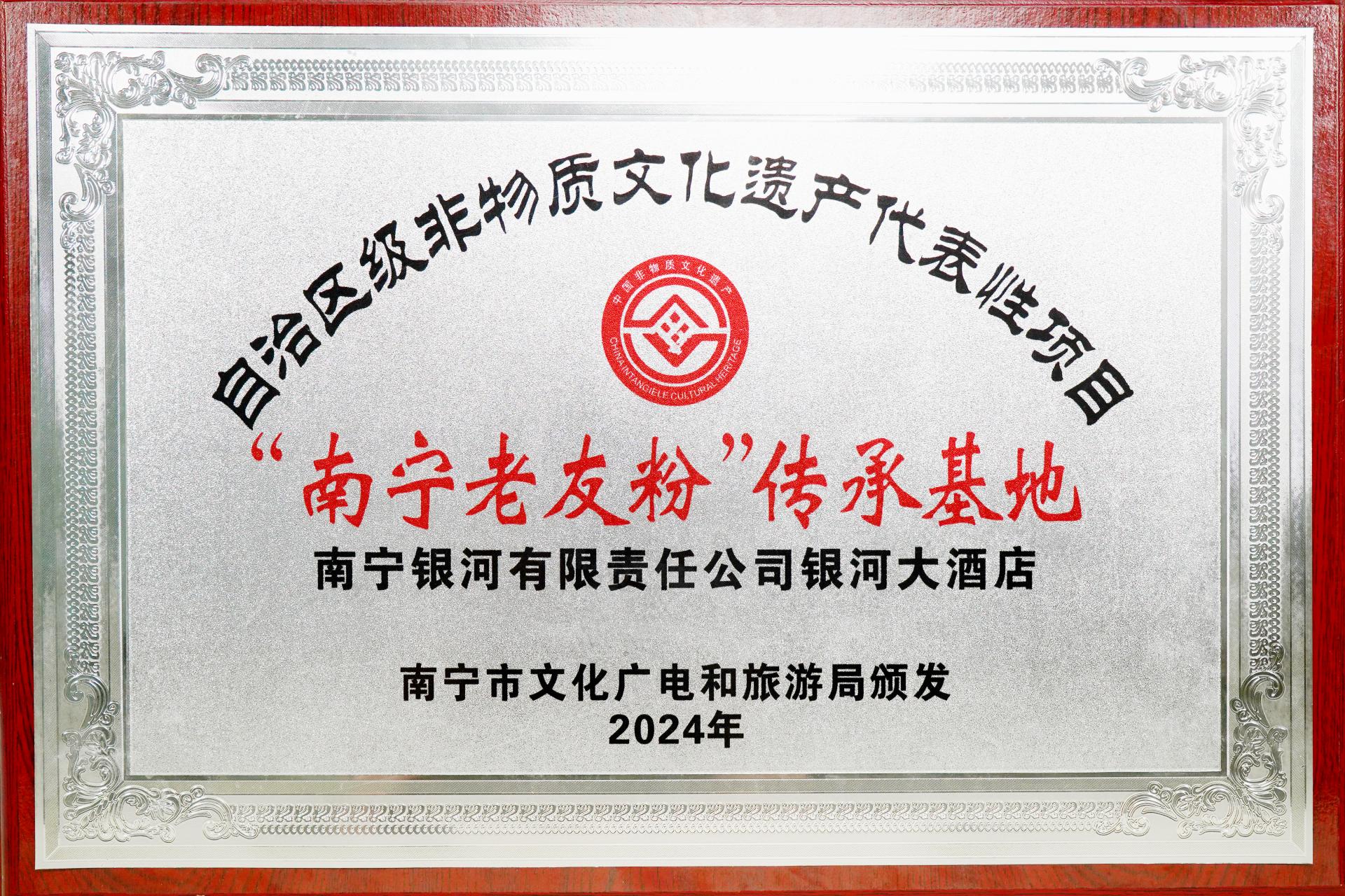 为充分打造老友味道文化IP,银河公司通过与广西烹饪餐饮行业协会深度合作,大胆创新,丰富产品结构,将“老友味”逐步扩大到数十道菜品、小吃,其中老友鱼、老友锅包肉、老友铜鼓饼等老友美食成了银河大酒店的招牌美食,也让银河大酒店成为了广大市民熟知的本土美食地标。在“寻找老友粉溯源地,打造老友味道文化IP”座谈会上,银河公司被授权挂牌为“老友味道传承中心”和“南宁老友粉产业促进中心”;在南宁市2024年“文化和自然遗产日”非遗宣传展示活动中,银河公司获得自治区级非物质文化遗产代表性项目“南宁老友粉”传承基地荣誉称号,并成为第一个获得兴宁区城市IP授权使用的商家,实现了快速稳健发展。
