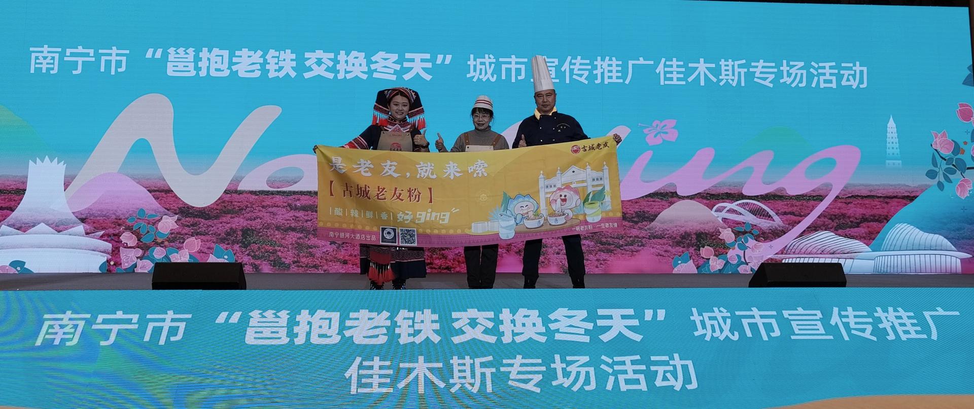 银河公司积极借势各级文旅单位举办的专场活动,远赴北京、黑龙江、吉林、山西等地,深度参与广西与其他省份、其他地区的文旅交流,为各地市民带来跨越千里的“老友味道”。同时,积极参与南宁市商务局举办的“邕品出海”系列活动,增进“古城老友”品牌与泰国、越南等东盟国家的交往交流,并携“古城老友”品牌与南宁市兴宁区城市IP“南小兴友小宁”系列联名产品首秀第21届中国-东盟博览会,向国内外企业推介"南小兴友小宁和古城老友”联名系列产品,助力产品"出海又出圈",为南宁老友粉产业高质量发展赋能。