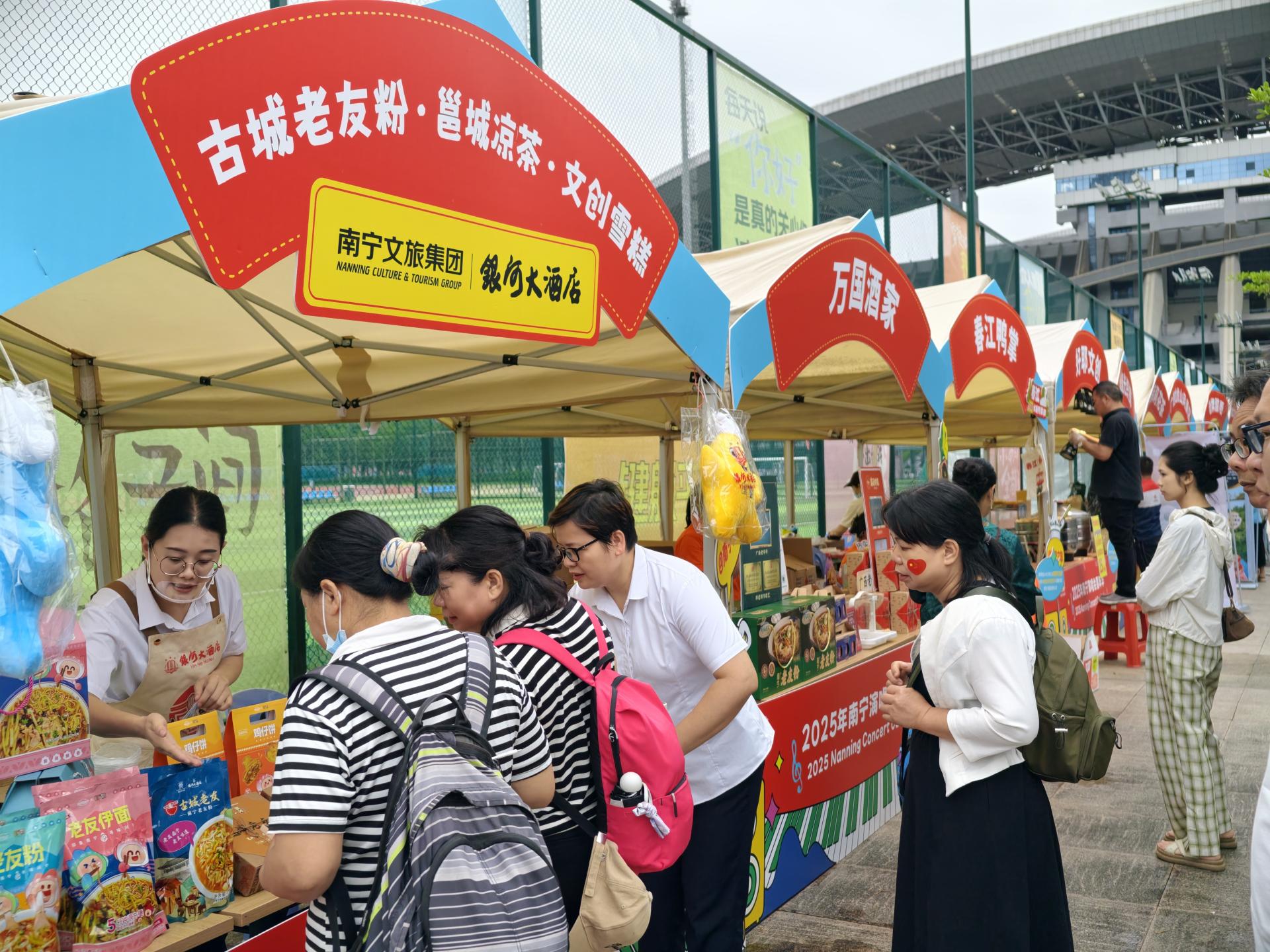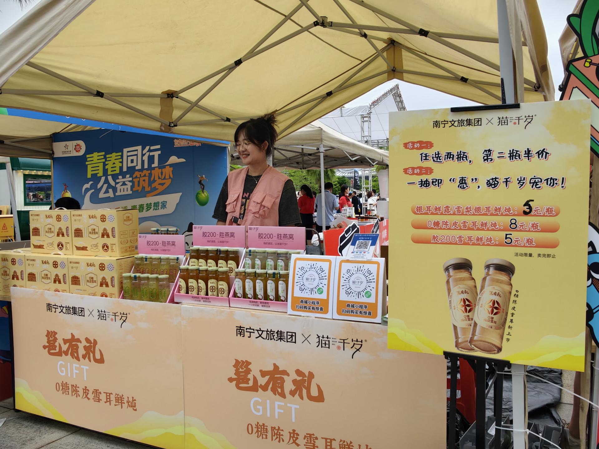 为丰富演唱会外延体验,南宁文旅集团精心策划一系列配套活动。在广西体育中心喷泉广场,打造47个摊点的广西非遗特色演唱会市集。南宁文旅集团联合猫千岁品牌出品的“邕有礼”银耳系列好礼成为市集的焦点;银河公司旗下的古城老友粉、邕城凉茶以及文创雪糕让歌迷们大饱口福,“邕城凉茶”更是连续两天在开场前被抢购一空;五象山庄在体育馆内区域设立“五象能量站”,提供薄荷柠檬水、冻柠乐、手作软欧包等,供粉丝进行现场的能量补给。据统计,为期两天的演出,共吸引3万歌迷体验市集活动。