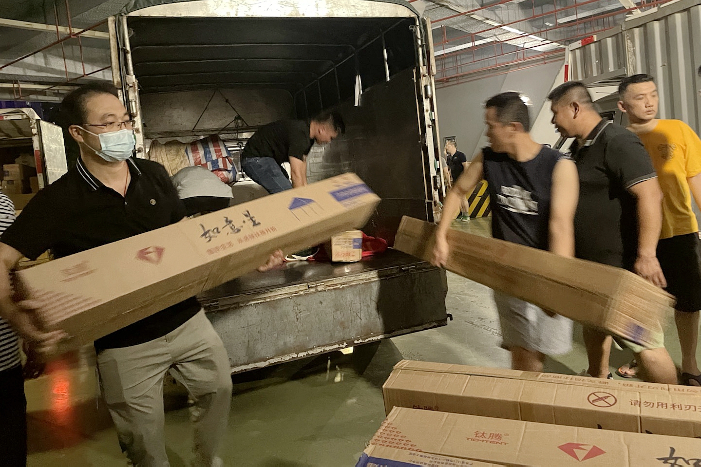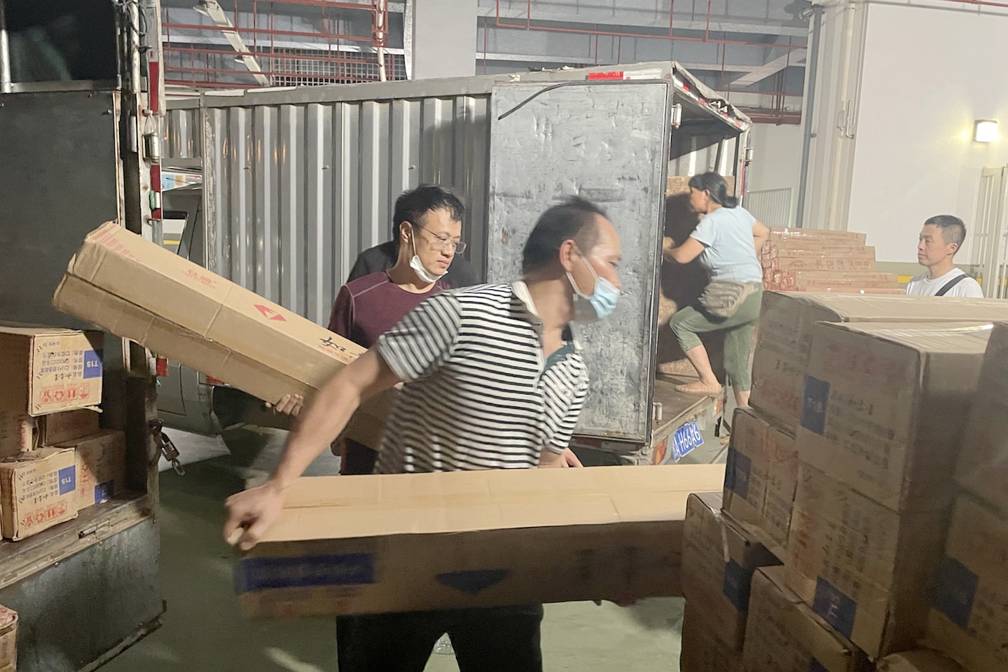 一滴滴汗水,是责任担当。“来,擦擦汗,继续加油干。”刚卸完二十顶帐篷的老党员巫恒军擦掉流入眼里产生刺痛的汗水,继续投入到紧急工作中。现场紧张而忙碌,大家默契配合,在闷热的空气里汗流浃背,但是手上的动作却越来越熟练,搬运的劲头丝毫不减。经过近10个小时的连续奋战,19日凌晨2:50,随着最后一台物资配送车完成装货出发,400多个核酸检测点的物资配送圆满完成。