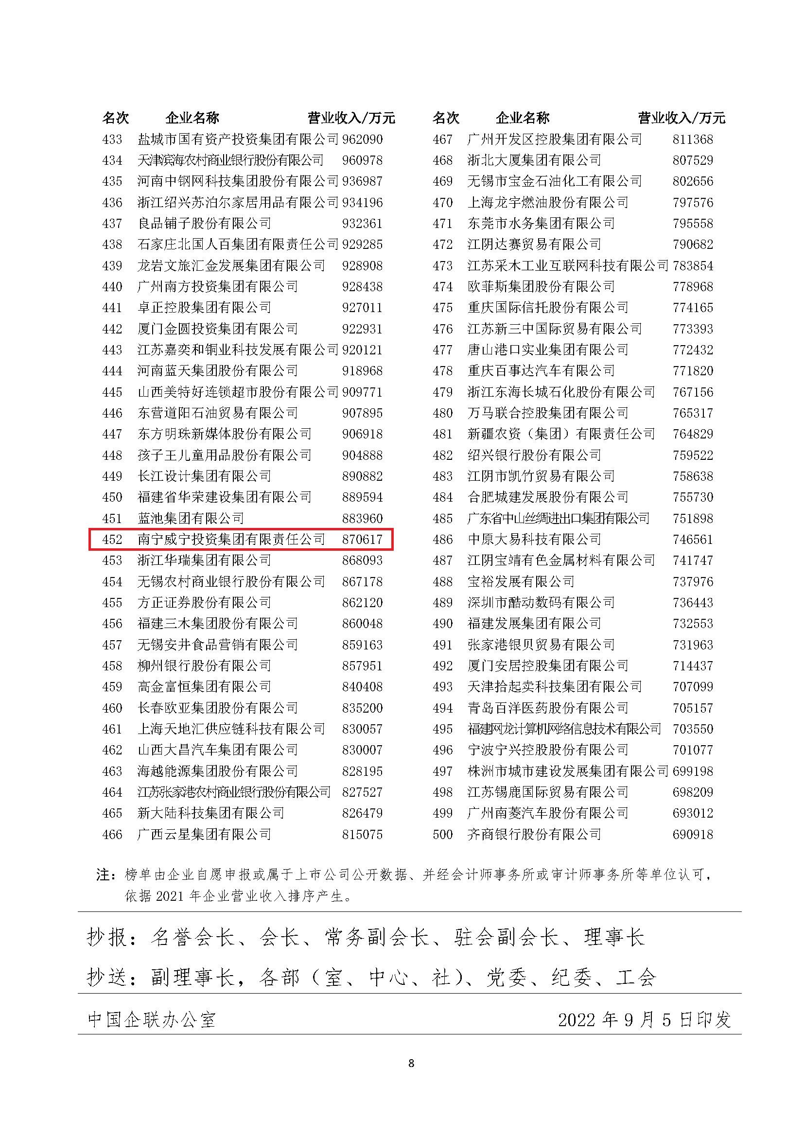 近日,中国企业联合会、中国企业家协会发布了“2022中国服务业企业500强”榜单,c7网站再度荣登,成为唯一一家连续七年入围中国服务业企业500强的南宁市属国有企业。
