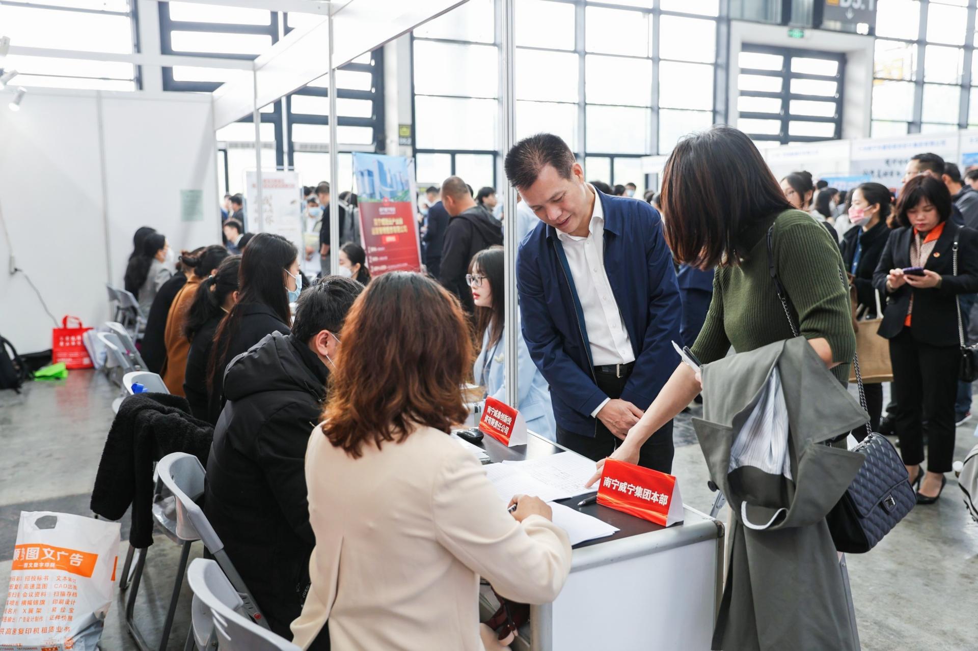 集团公司及南宁C7(中国)市场发展有限责任公司、南宁威耀集采集配供应链管理有限公司、南宁威泰创新投资有限责任公司、南宁威链云产业园运营管理服务有限公司4家监管单位参加本次人才交流大会,参会的岗位涉及经营管理、党务宣传、投融资管理、财务审计及企业中高级管理岗位等岗位,岗位需求达56人。集团的联合展位受到了众多应聘者的关注,从早上9点开始,在招聘展位前驻足观看、询问、投递简历的求职者就排起了长队,现场共收到简历300余份,后续网络渠道招递仍在持续。