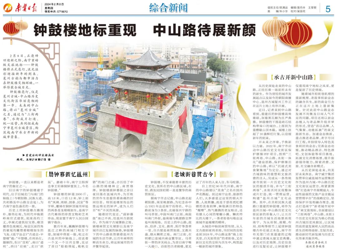 作为邕州古城·中山路历史文化街区的形象入口,百年钟鼓楼风采重现,被视为邕州古城·中山路历史文化街区华丽亮相的第一步,更是威邕城市运营集团打造邕州古城城市级商文旅项目的关键一步。