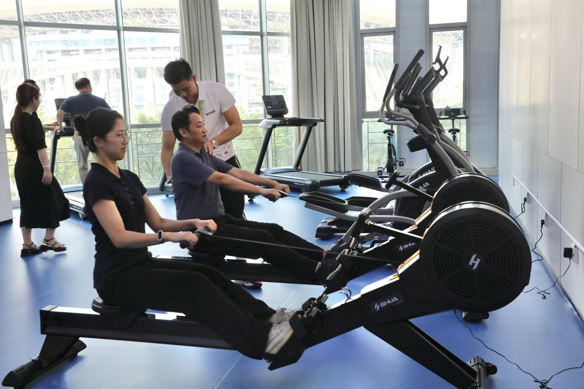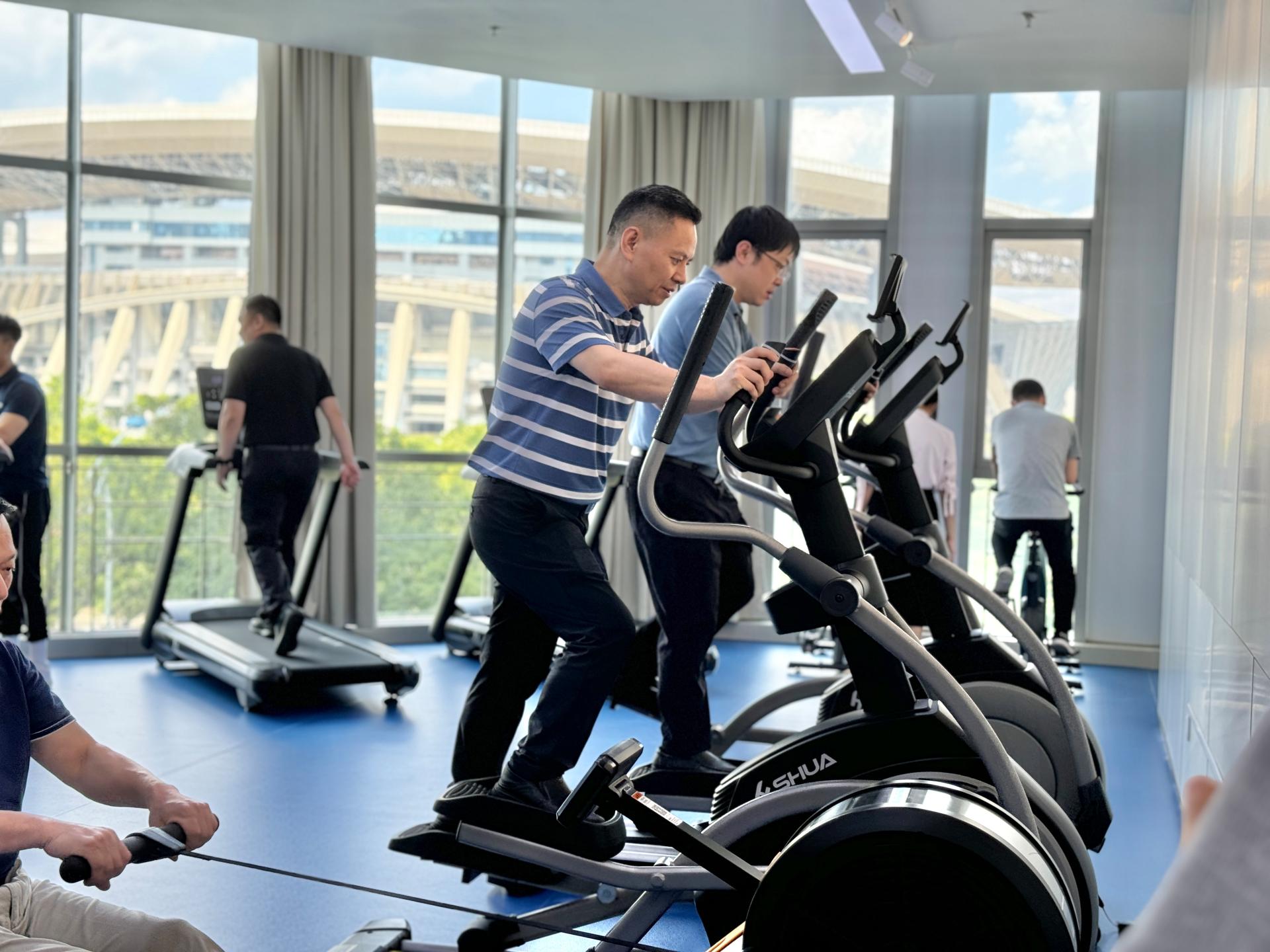 c7网站职工健身房设在C7(中国)总部大厦二层,总面积约140㎡,配备有多功能训练器、跑步机、椭圆机、划船机等多种大型运动健身器材,并设有独立淋浴间,对全体职工免费开放。职工健身房的建成使用,向广大职工传递了“全民健身,共享健康”的理念,为职工“足不出户”即可运动健身提供了良好条件。下一步,职工健身房将不定期邀请健身教练、瑜伽教练等专业人员对职工进行现场指导,为职工打造便捷、高效的运动健身场所。