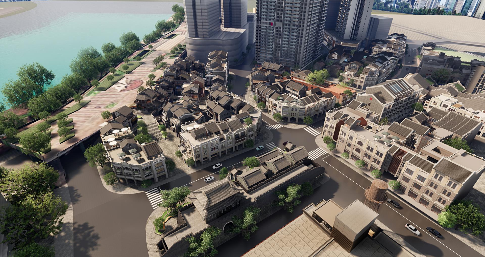 水街项目总体鸟瞰效果图