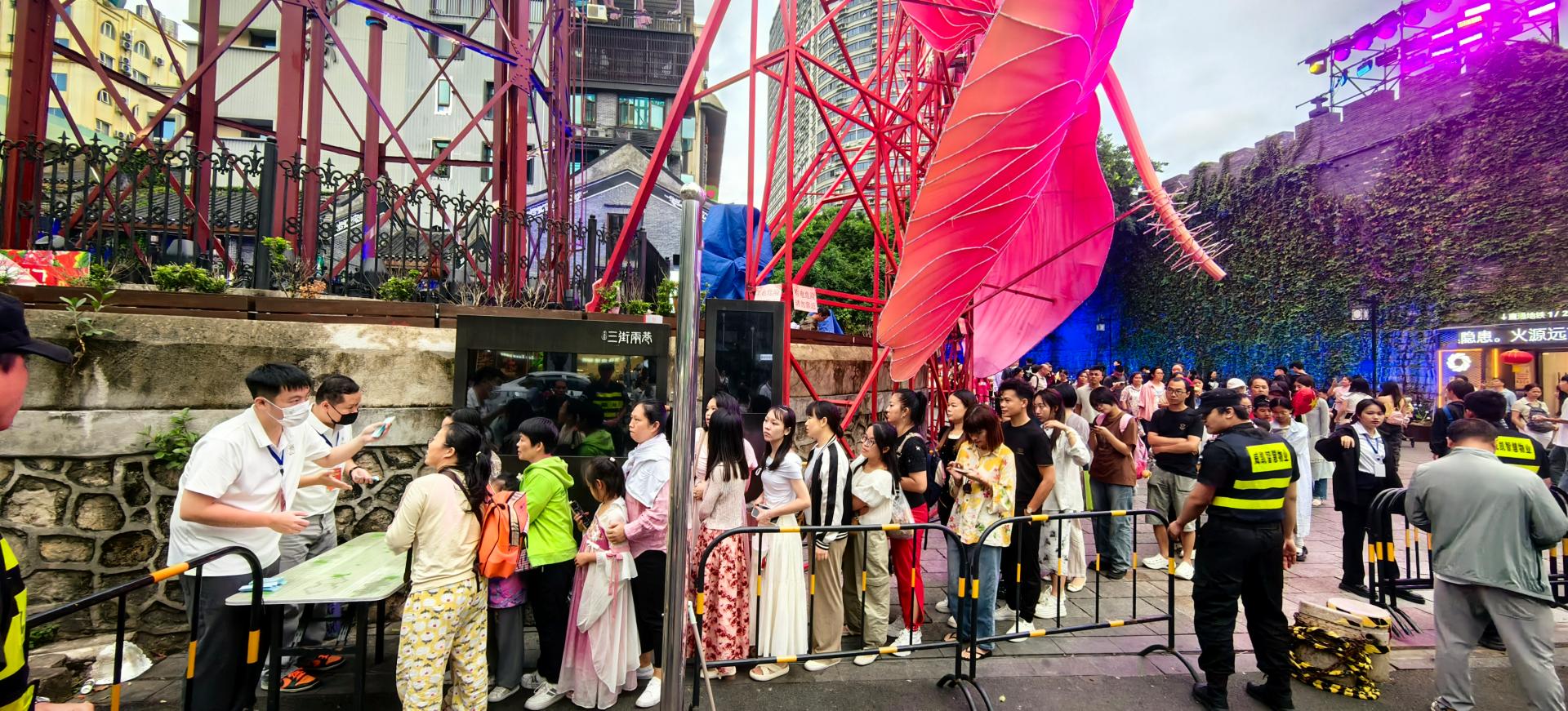 “花仙子小姐姐太美了”、“新华街水塔下盛开的朱槿花太惊艳了”、“原来有这么多写南宁、写邕江、写朱槿花的诗歌啊”、“灯光秀太‘秀’了”……在刚刚过去的国庆假期,邕州古城·三街两巷凭借长达15天的沉浸式光影演绎,再次“火”上了抖音、小红书等各类社交平台。抢免费观演入场券、晒观演攻略、拍各个角度的巨型朱槿花成为最近提及三街两巷时关联的最热门内容,参与上传和分享经验的不止有本地市民,还有更多的外地游客,纷纷通过图片、视频等不同方式的分享观看心得,向全国游客“安利”南宁这座新晋“网红”旅游打卡城市。邕州古城·三街两巷用丰富的街区活动、有秩序的组织管理和亮眼的消费带动力,在今年的国庆假期中,再次交出了南宁“城市人文会客厅”的满分答卷。
