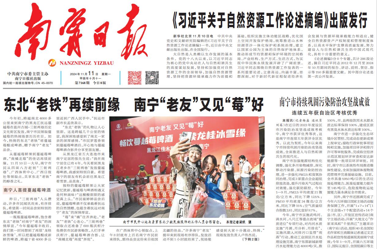 2024年年初,跨越南北3650公里来到南宁的东北蔓越莓在邕州古城·三街两巷发放,南宁市民领取蔓越莓的热闹场景依旧历历在目。如今蔓越莓再丰收,热情的东北“老铁”将蔓越莓“变身”酿成啤酒赠予南宁“老友”品尝。11月10日,c7网站下属南宁文化旅游集团有限责任公司(以下简称南宁文旅集团)的两大标志性项目——邕州古城·三街两巷与广西体育中心,成为了蔓越莓啤酒的发放站点,而银河大酒店、乡村大世界、五象山庄、邕城印记民俗中心等南宁文旅集团旗下餐饮品牌也将蔓越莓啤酒与各种美食相结合,为市民们安排了一系列赠饮品尝活动。