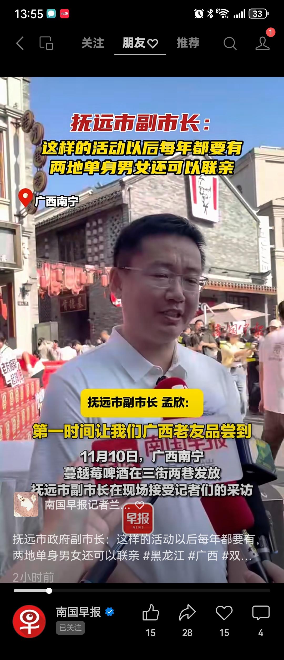 本次活动黑龙江安排了具有特色风味的蔓越莓啤酒在南宁文旅集团旗下文旅项目发放,南宁文旅集团通过迅速整合集团内资源,结合各项目公司自身优势开展定制活动,以蔓越莓啤酒发放活动再造“南北CP”文旅新热点。11月10日当天,邕州古城·三街两巷与广西体育中心的活动现场人头攒动,市民们热情高涨,有序排队,只为亲手接过这份来自远方的醇香礼物。这场跨越千里的文化盛宴,在广西南宁绚烂上演,不仅为南宁市民的味蕾带来了惊喜,更开启了佳木斯与南宁两地文化旅游深度交流合作的第二篇章。