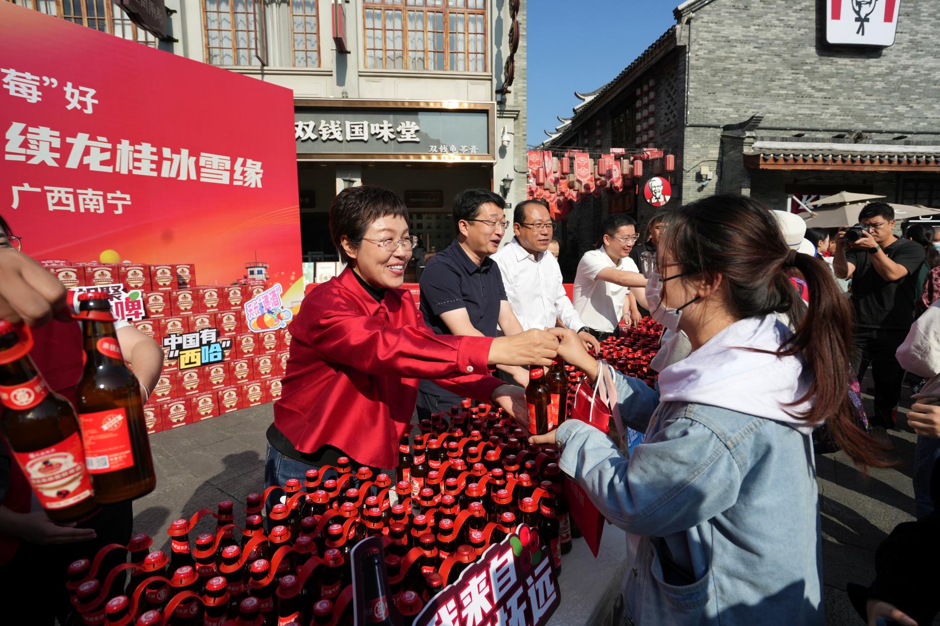 值得一提的是,南宁文旅集团不仅作为南宁市国有企业代表,组织和执行了邕州古城和广西体育中心蔓越莓啤酒发放的工作,让这场“莓”妙奇缘成为了南宁文旅集团耕耘文化交融的美好序曲。同时还以蔓越莓啤酒为媒,牵动两地产业互联互通,后续奏响的“莓”妙奇缘还将体现在蔓越莓下游产业布局在南宁文旅市场的发展,从“南北CP”的文旅互动到产业联动的常态化运行。发放活动当天,南宁文旅集团、抚远市旅投集团和各有关企业在邕州古城·三街两巷邕城印记民俗中心签署产业合作意向书。南宁文旅集团与蔓越莓啤酒生产厂家抚远市抚远镇唯美庄园签订了蔓越莓啤酒的广西总代理,而抚远市黑瞎子岛文化旅游投资集团有限公司也与南宁银河有限责任公司签订了 “邕城老友”袋装老友粉在抚远市的代理委托书,广西和黑龙江两地通过一次次的相互奔赴,将各自的特产、文化进行更深入的交流互通,让更多的广西老友品尝到东北味道,也让东北老铁感受到来自南宁老友粉的魅力。