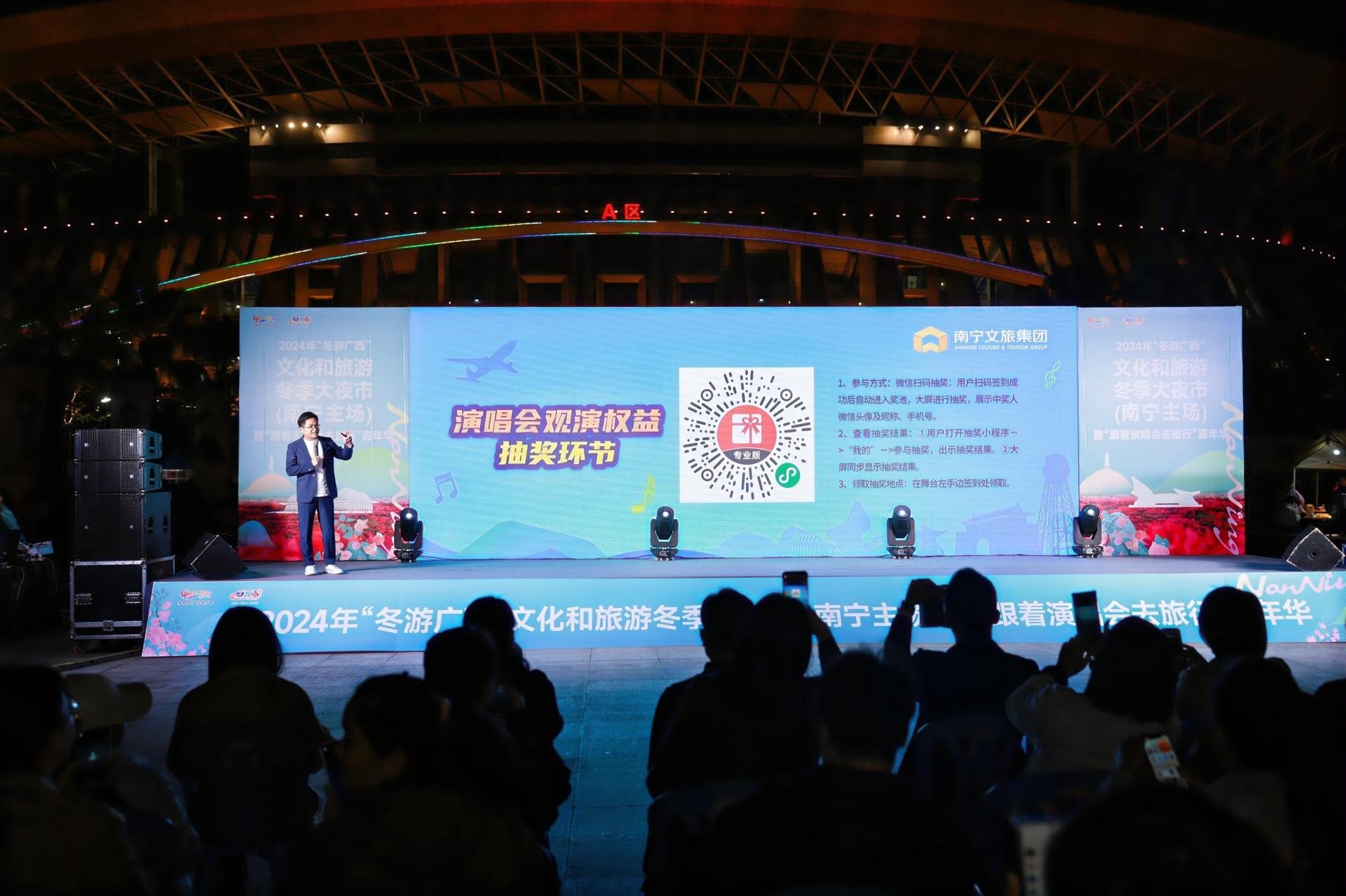 随着演唱会经济市场持续繁荣,“为一场演出而奔赴一座城”已成为撬动城市文旅消费的“金钥匙”。为提振岁末年初文旅消费市场,全方位展示广西和南宁特色的民族文化品牌形象,以周深演唱会为契机,由广西壮族自治区文化和旅游厅、南宁市人民政府主办,南宁市文化广电体育和旅游局、商务局以及良庆区人民政府承办,良庆区文化广电体育和旅游局、南宁C7(中国)文化体育发展有限公司协办的2024年“冬游广西”文化和旅游冬季大夜市(南宁主场)暨“跟着演唱会去旅行”嘉年华活动在广西体育中心举行。