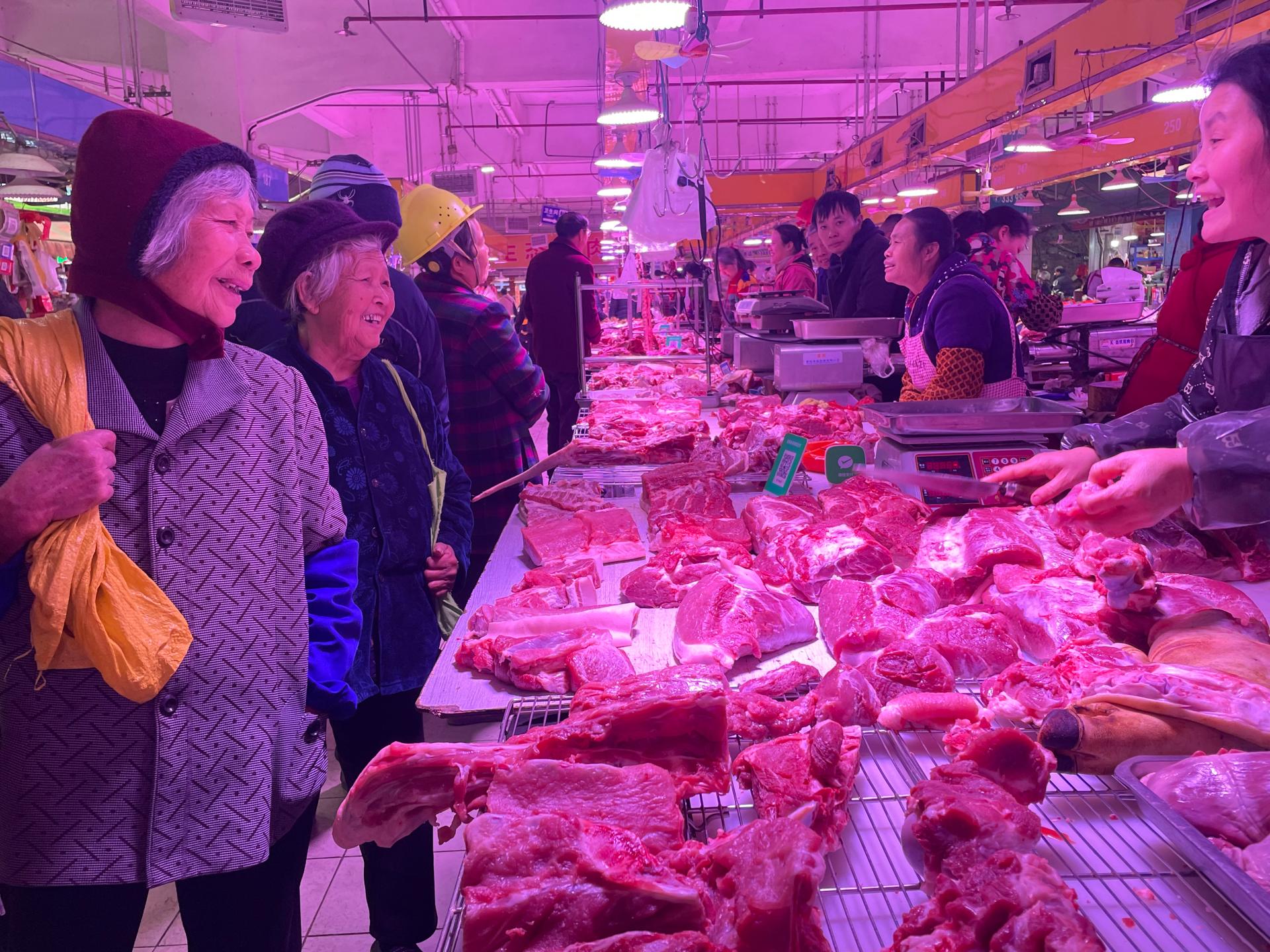 邕宁和平市场肉类货品供应充足