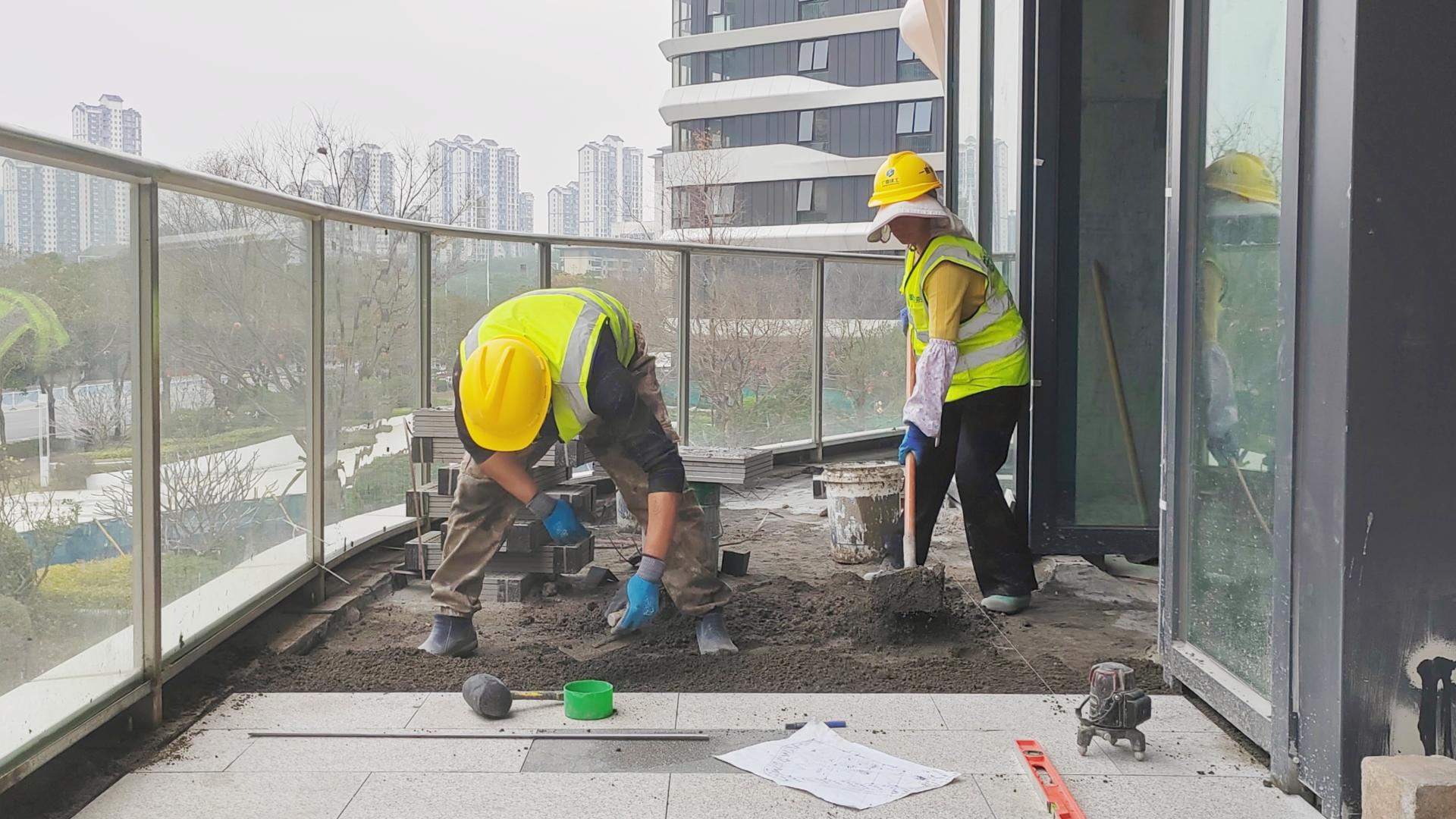 东盟C7(中国)文创中心项目施工现场铺设地砖