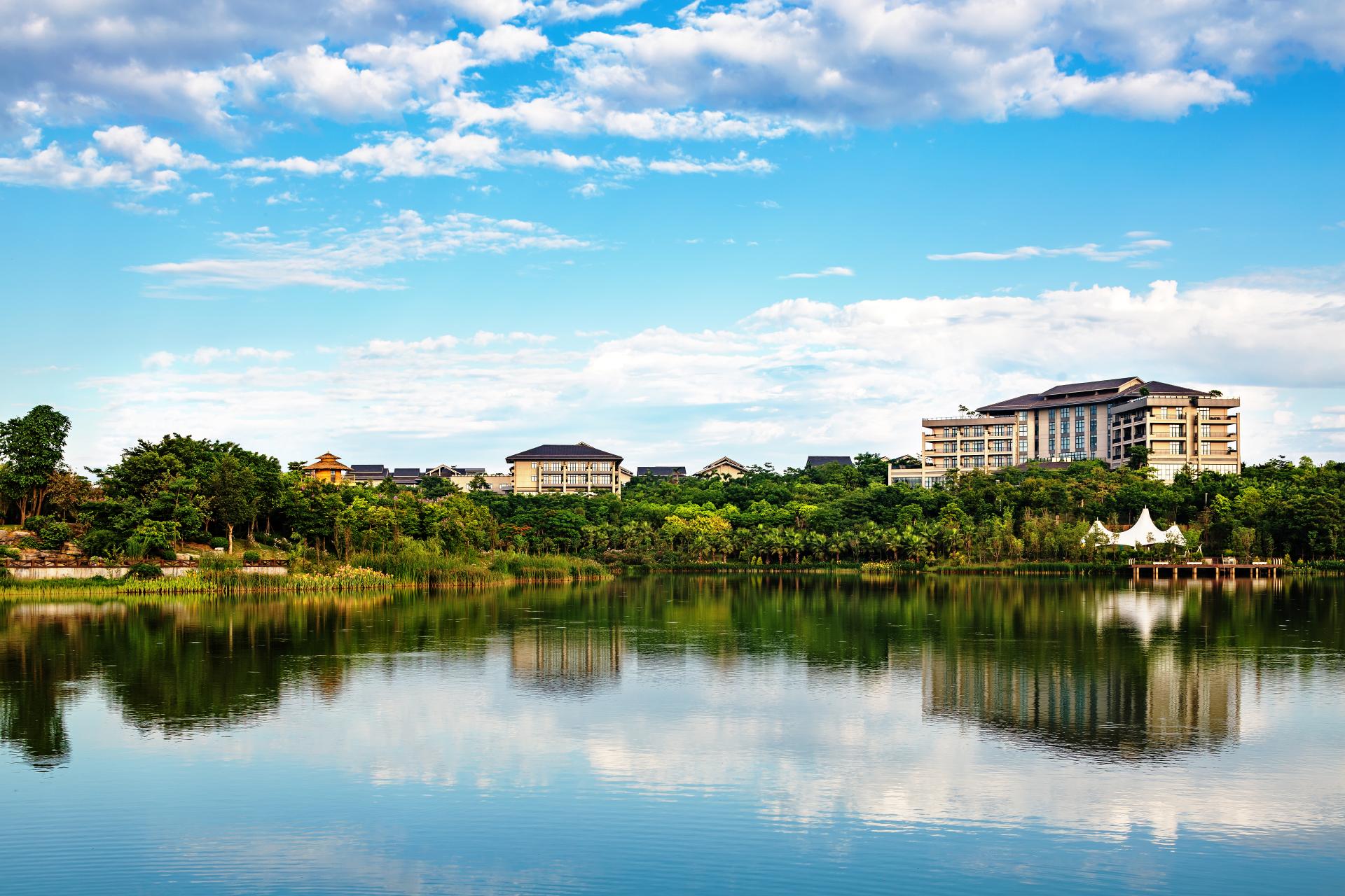 五象山庄位于南宁市良庆区秋月路9号,紧邻风景秀丽的五象湖公园,占地面积达200余亩,建筑面积约5万平方米。山庄内园林式建筑群交相辉映,自然环境得天独厚,林木郁葱,鸟语花香,波光潋滟,曲径通幽,宛如世外桃源。这里离尘不离城,不仅是一处远离喧嚣的宁静之地,更是集文化旅游、休闲度假、聚会娱乐为一体的商务园林酒店。