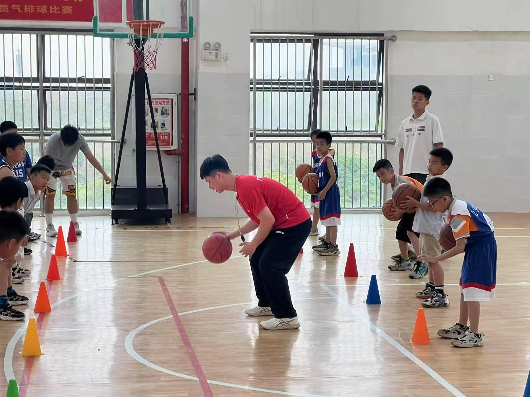 除体育器材物资支持外,广西体育中心育才基地专业篮球教练团队还为学生们带来趣味与专业并重的公益课堂。在滨湖路小学(五象校区)的室内篮球场上,教练通过“运球接力”“投篮挑战”等教学方式,引导孩子们掌握传球、运球等基础动作。孩子们兴奋地说:“教练教我们如何用身体护球,以前打球总被抢断,现在感觉自信多了!”