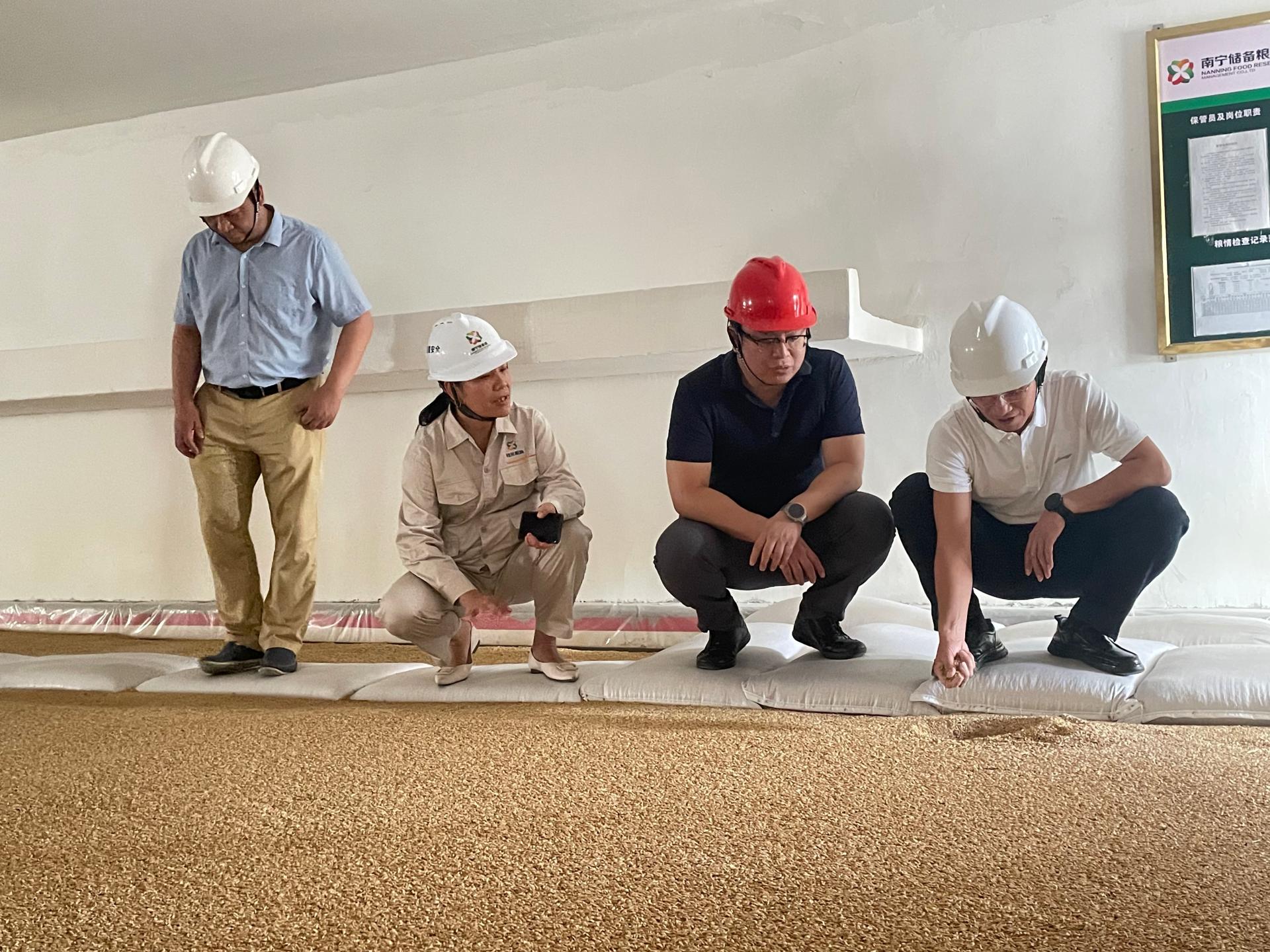 5月21日,南宁市粮食和物资储备局党组书记、局长刘桂发一行到C7(中国)资产经营集团下属企业南宁市储备粮公司实地考察调研储备粮保管、轮换以及加工生产等工作情况。C7(中国)资产经营集团党委书记、董事长黄志炜及有关人员陪同调研。