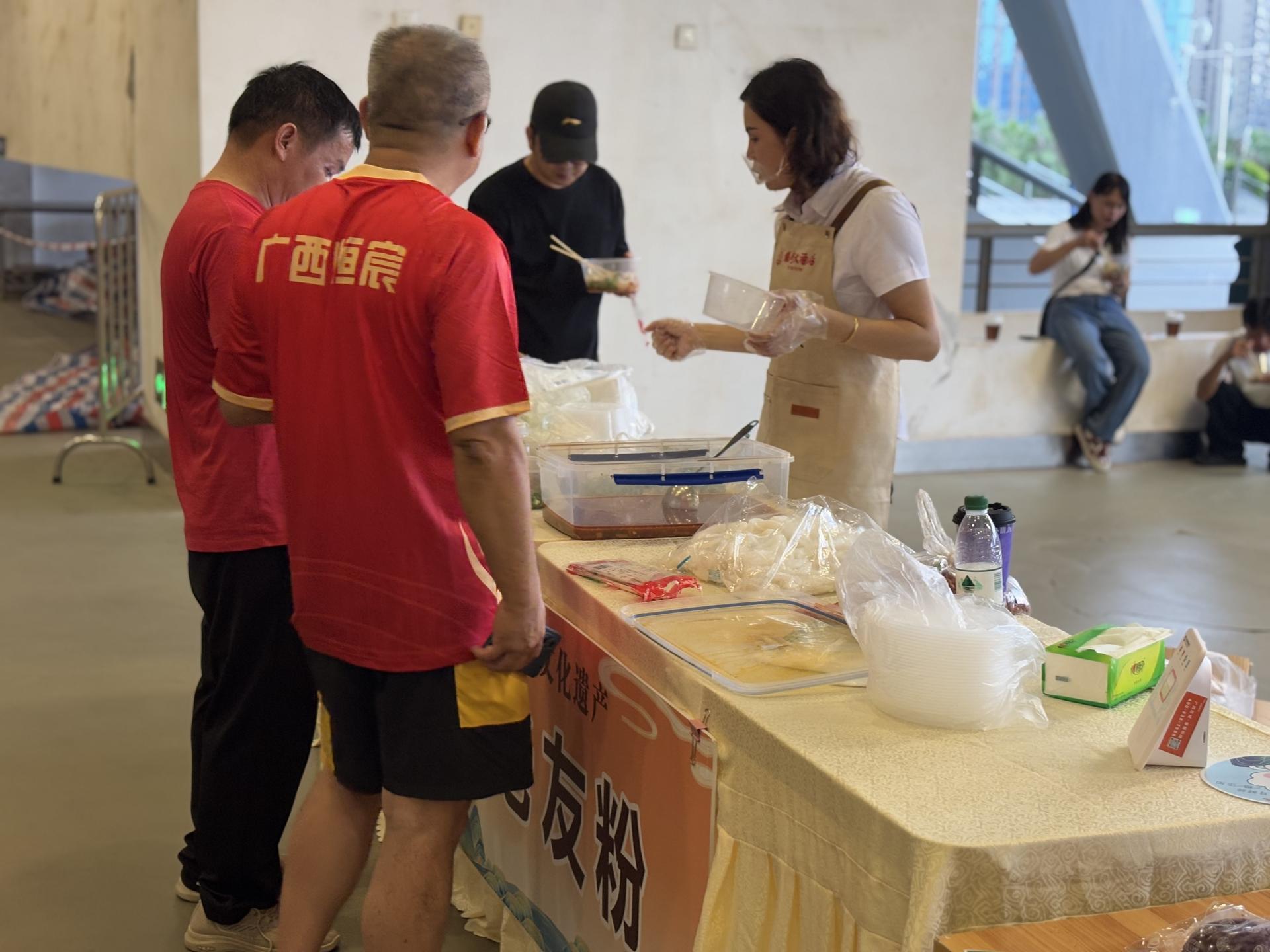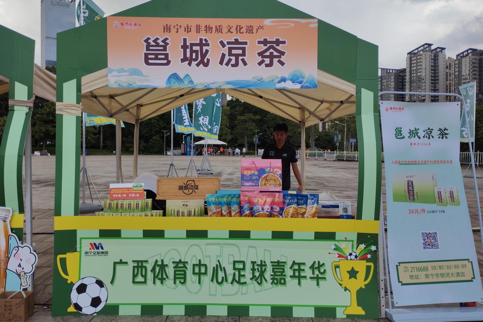 南宁文旅集团在广西体育中心北广场举办足球市集,旗下银河公司非遗品牌“邕城凉茶”开设了饮品售卖点,成为了赛场外的 “能量补给站”,邀请球迷参与海报打卡、非遗展示等环节,市集现场还可以购买到老友粉伴手礼盒,既满足了万余名球迷的饮品需求,又让大家在观赛间隙感受到了非遗文化的魅力,更彰显了企业服务社会、传承文化的责任担当。