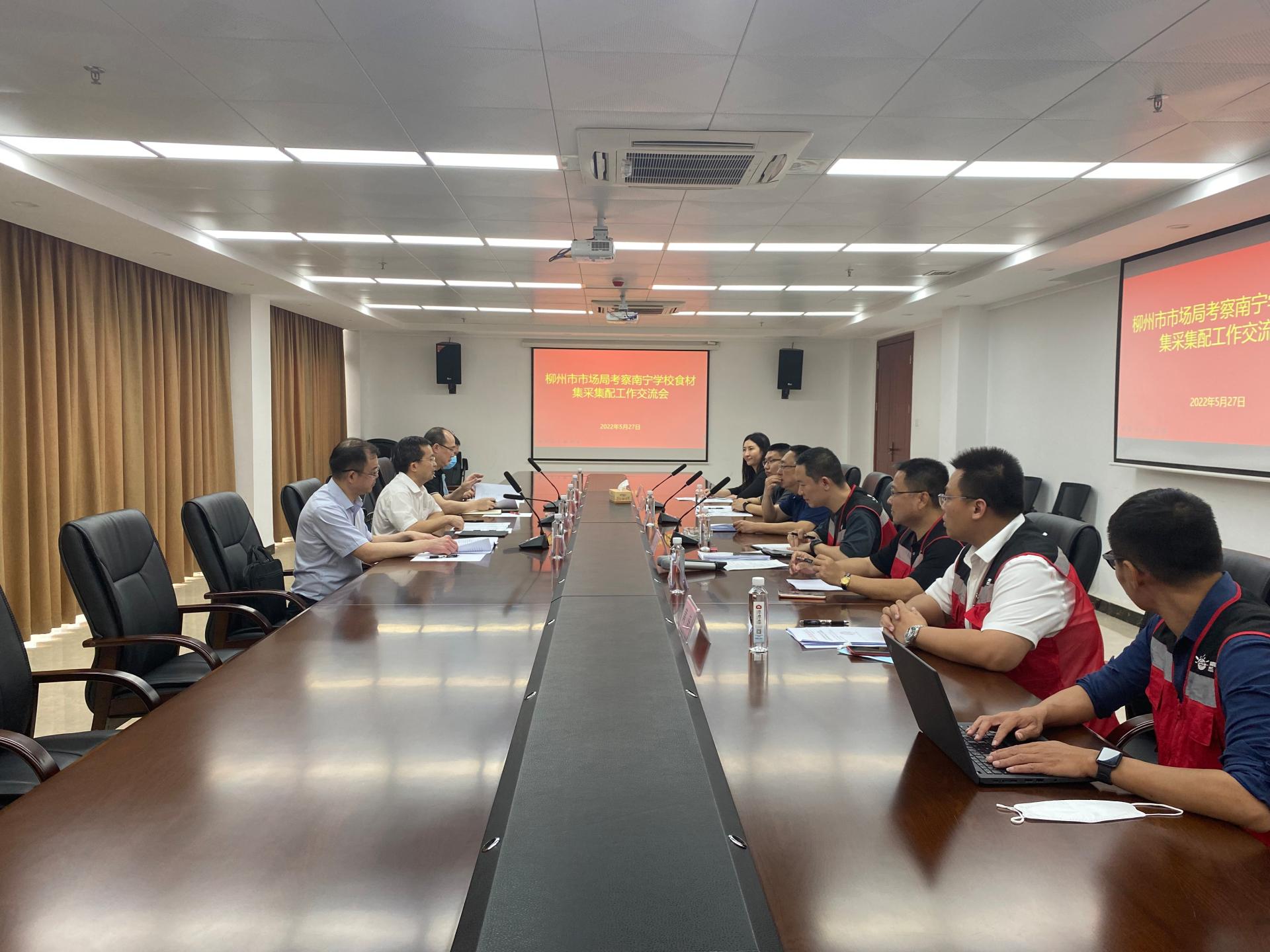 2022年5月27日下午,柳州市市场监管局党组书记、局长蒋为民带队到威耀供应链公司五象配送基地实地考察南宁市学校食材集采集配项目,为柳州市优化学校食材配送模式学习借鉴经验。南宁市市场监管局党组成员、副局长张大海,威耀供应链公司总经理张鑫及相关人员陪同调研。
