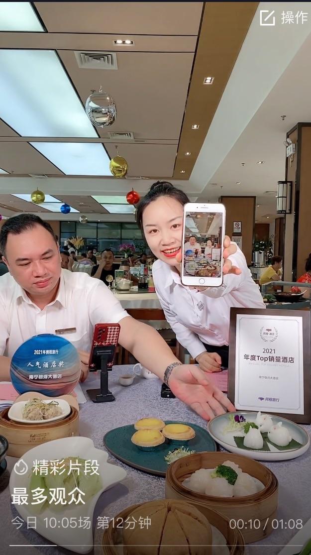经过精心筹备和严格的选品,银河公司直播团队于6月16上午在银河大酒店风味轩早茶餐厅现场,利用银河公司官方抖音号开始首场以“银河618年中钜大促”主题活动,时长2小时的直播活动包括银河大酒店介绍、风味轩早茶介绍、互动抽奖送福利、特价爆款单品秒杀、限时特惠早茶套餐抢购等环节,直播开始就有众多新老粉丝进入直播间观看和互动,直播10分钟交易成交额突破千元,在公司自己培养的主播团队的热情推介下,2小时的直播活动收获观看人数近1200人次,获得粉丝点赞近9万次,直播当天2小时单日的成交额比往日增长了400%,远超预期目标。