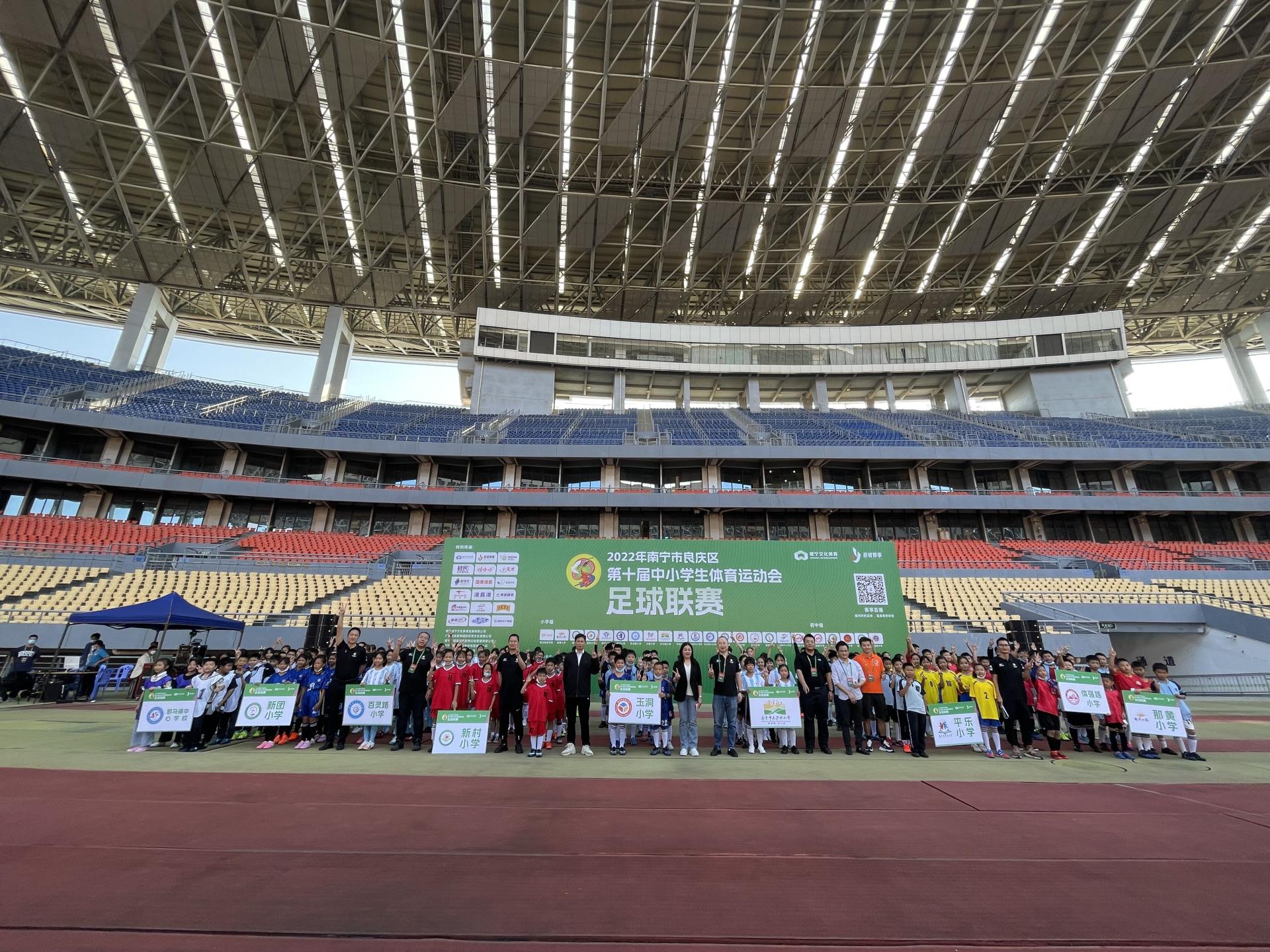 2022年南宁市良庆区第十届中小学生体育运动会足球联赛于2022年10月17日上午在广西体育中心拉开帷幕。南宁市良庆区教育局党组书记、局长李雪丽、副局长潘波,南宁C7(中国)文化体育发展有限公司总经理罗姗馨、副总经理林国城,广西邕城赛事国际体育文化有限公司及相关单位的领导出席了此次活动。