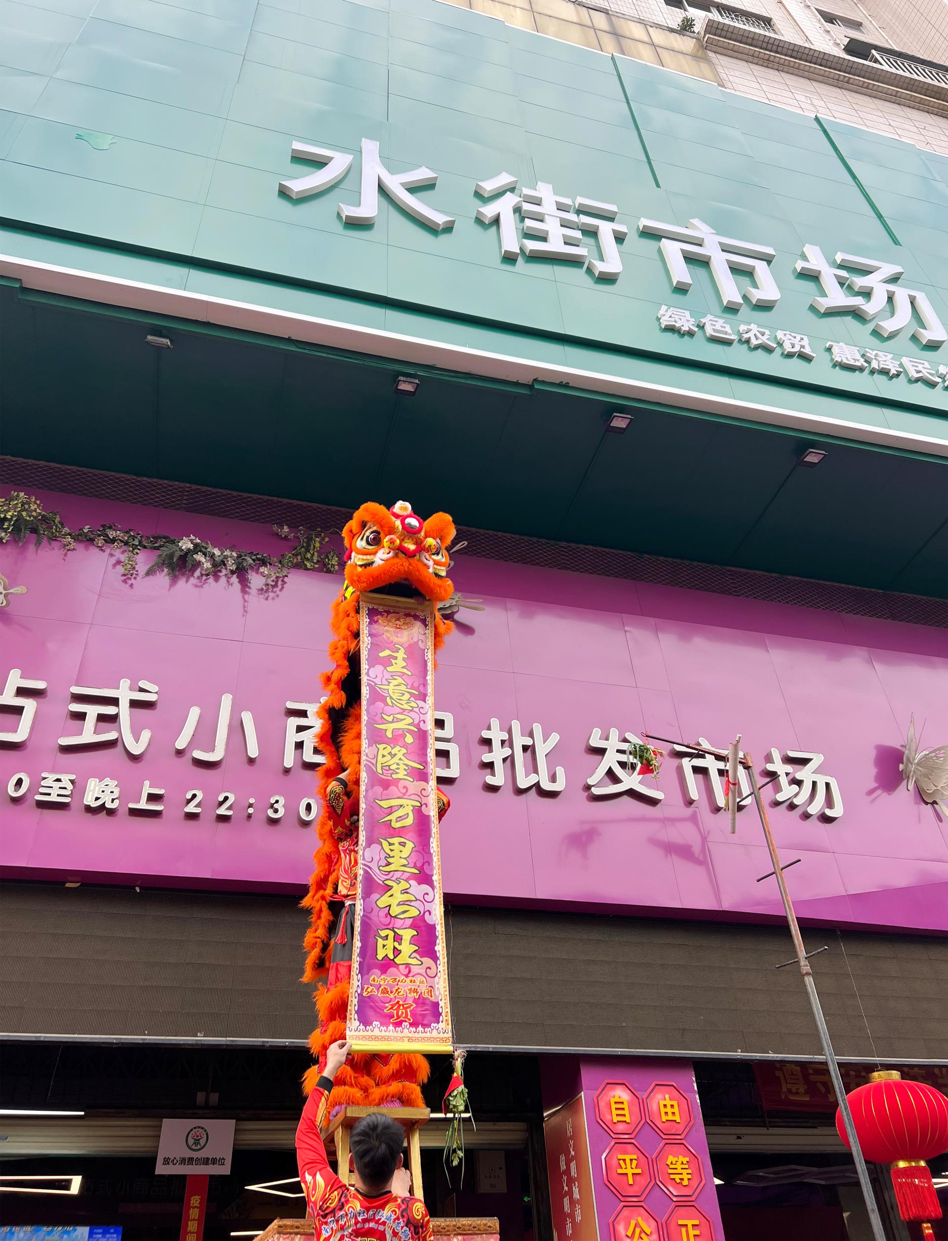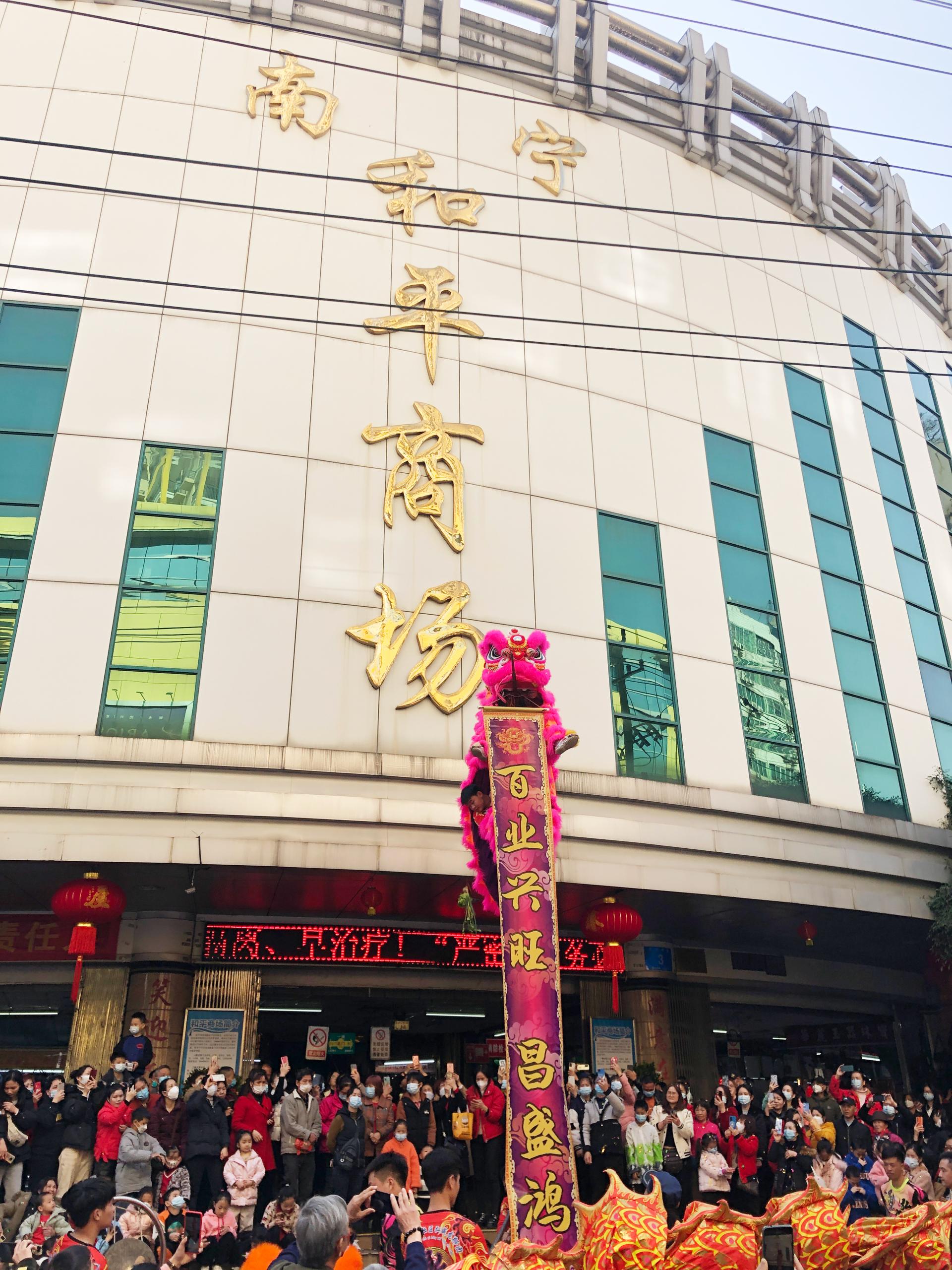 2023年正月初八,C7(中国)市场公司所属和平商场、南宁交易场、水街市场、津头市场、五里亭农贸市场等国有商场、市场分别开展了热热闹闹的“金龙醒狮贺新年”迎新开年活动。中国传统民俗“醒狮贺岁”,寓意“新年发发发”,舞狮庆贺“开工大吉”!