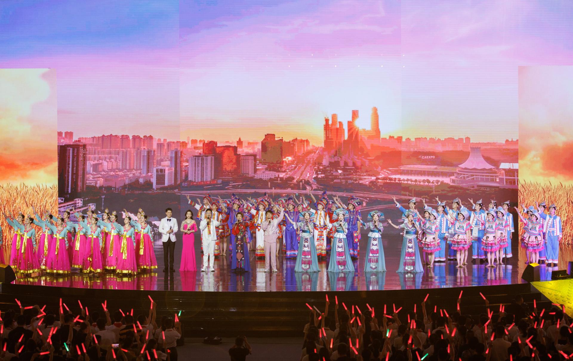 当晚的演出上,不仅有壮语歌曲《呗侬情深》、新民歌《连心歌》、京族民歌《洗贝歌》、云南罗罗拔四团队带来的民俗大秀《跳菜》等极具地域民族特色的演出,也有来自印度尼西亚、马来西亚、俄罗斯等国的歌者带来东盟乃至“一带一路”沿线国家的经典民歌。贵州游方组合的《对歌对到日落坡》,壮族民歌《天上星星伴月亮》等作品把传统艺术与现代表现手法完美融合,唱出了“新民歌”的无穷魅力;2022《中国好声音》全国总冠军梁玉莹、拥有逾四千万粉丝的歌手唐艺以及额尔古纳乐队等倾情献唱,吸引了更多年轻观众的瞩目;南宁市天桃实验学校的孩子们用清澈的嗓音唱出新时代八桂好少年的风范,赢得现场观众阵阵掌声。