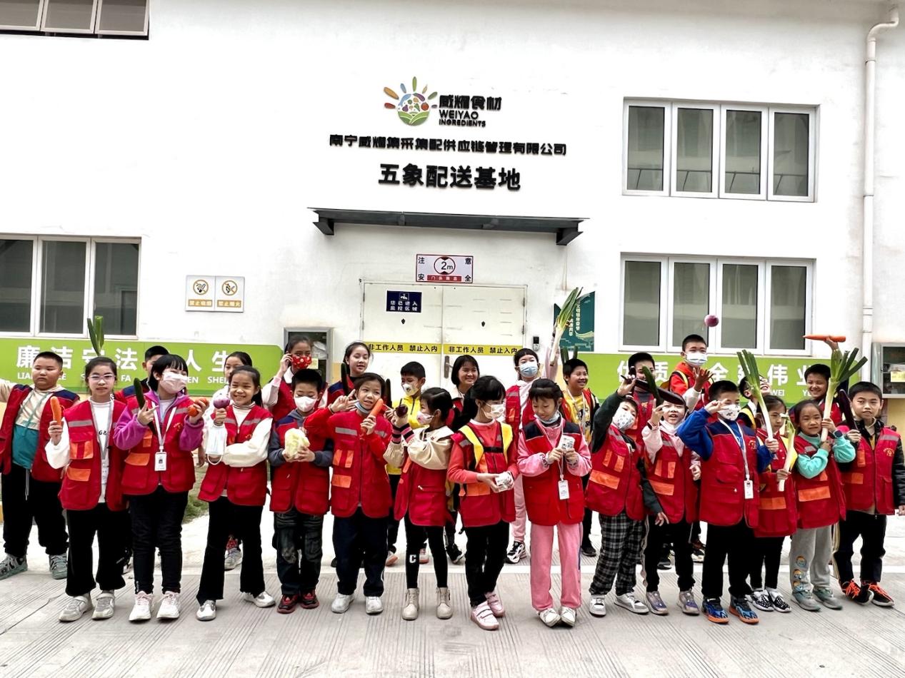 威耀供应链公司是南宁市公办学校食材集采集配项目的具体实施单位,是广西首家国家级服务业标准化试点企业(商贸流通专项),至2023年春季学期开始已实现业务对全南宁市范围覆盖,服务学校超2000所,服务师生超100万人。本次入选成为研学实践教育基地的五象配送基地实有3个标准化生鲜仓、1个检测中心(南宁市食药所技术帮扶单位)、1个冷链停车场以及200辆搭载智能化设备的标准化冷链车,专职负责南宁市主城区公办学校的食材集采集配工作。