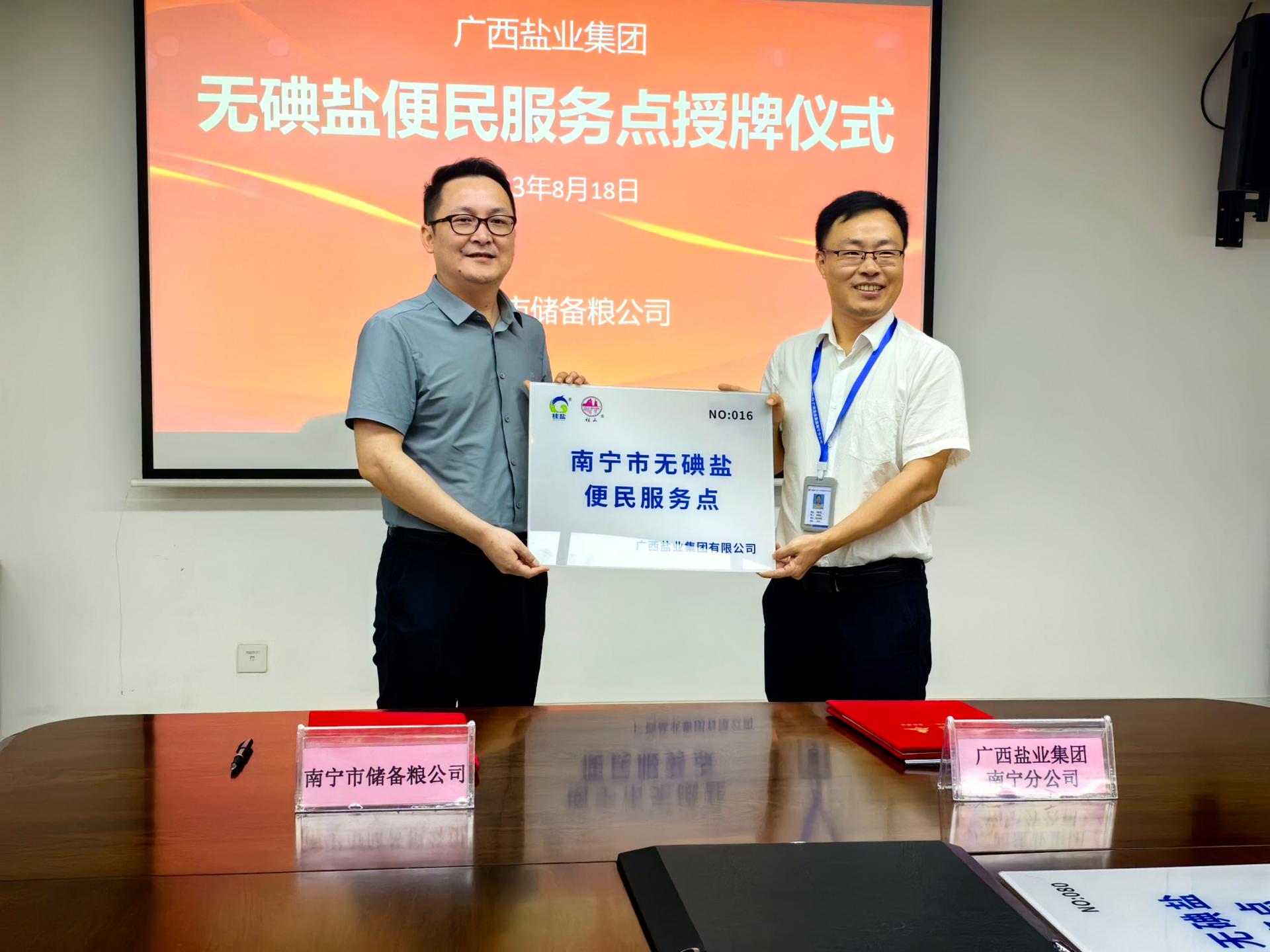 据悉,“无碘盐便民服务项目”系政府开展的民生福利保障工程,旨在为遵医嘱需食用无碘盐的特殊人群提供可靠、便利的产品购买渠道。授牌后,储备粮公司旗下四家粮油门店将提供“无碘盐便捷购买”公益服务,全力以赴保障首府南宁市民的“米袋子”“盐袋子”安全、稳定。