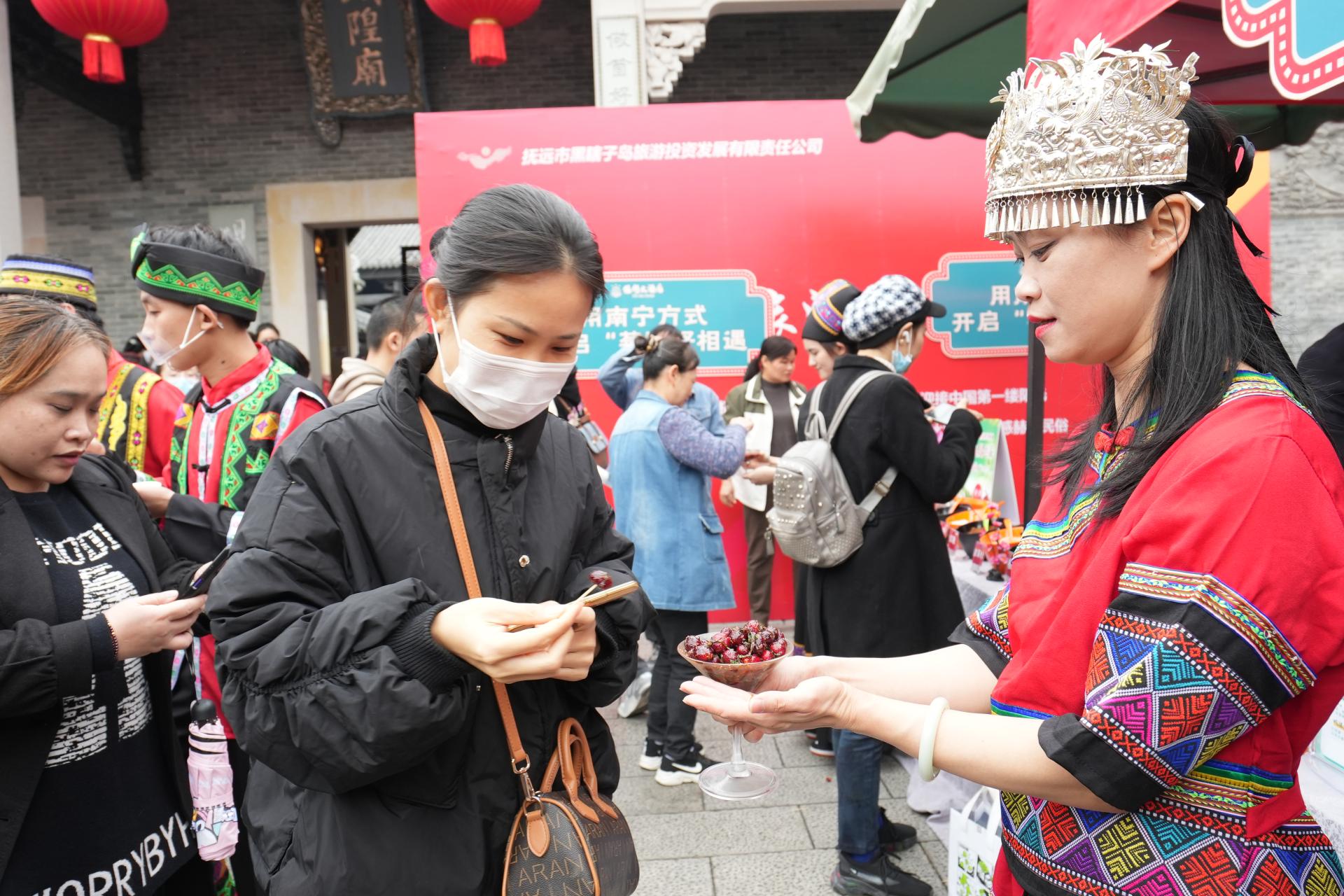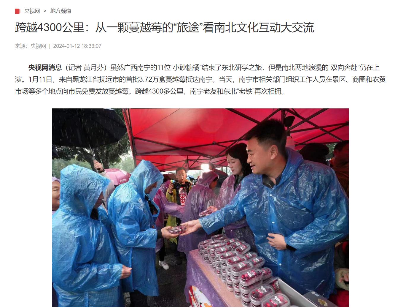 新年伊始,“蔓越莓”和“砂糖橘”成为了全国人民最为关注的“热词”,从黑龙江到广西,这场横跨4000多公里的双向奔赴,构成一幅跨越山川湖海的感人画卷。2024年1月11日-14日,第一批来自黑龙江的蔓越莓在邕州古城·三街两巷进行发放,邕州古城·三街两巷再次成为了全国人民关注的话题焦点。邕州古城·三街两巷用一幕幕的“莓”好时刻,传递着东北“老铁”与南宁“老友”的深厚情谊,构建两地人文交融新桥梁。