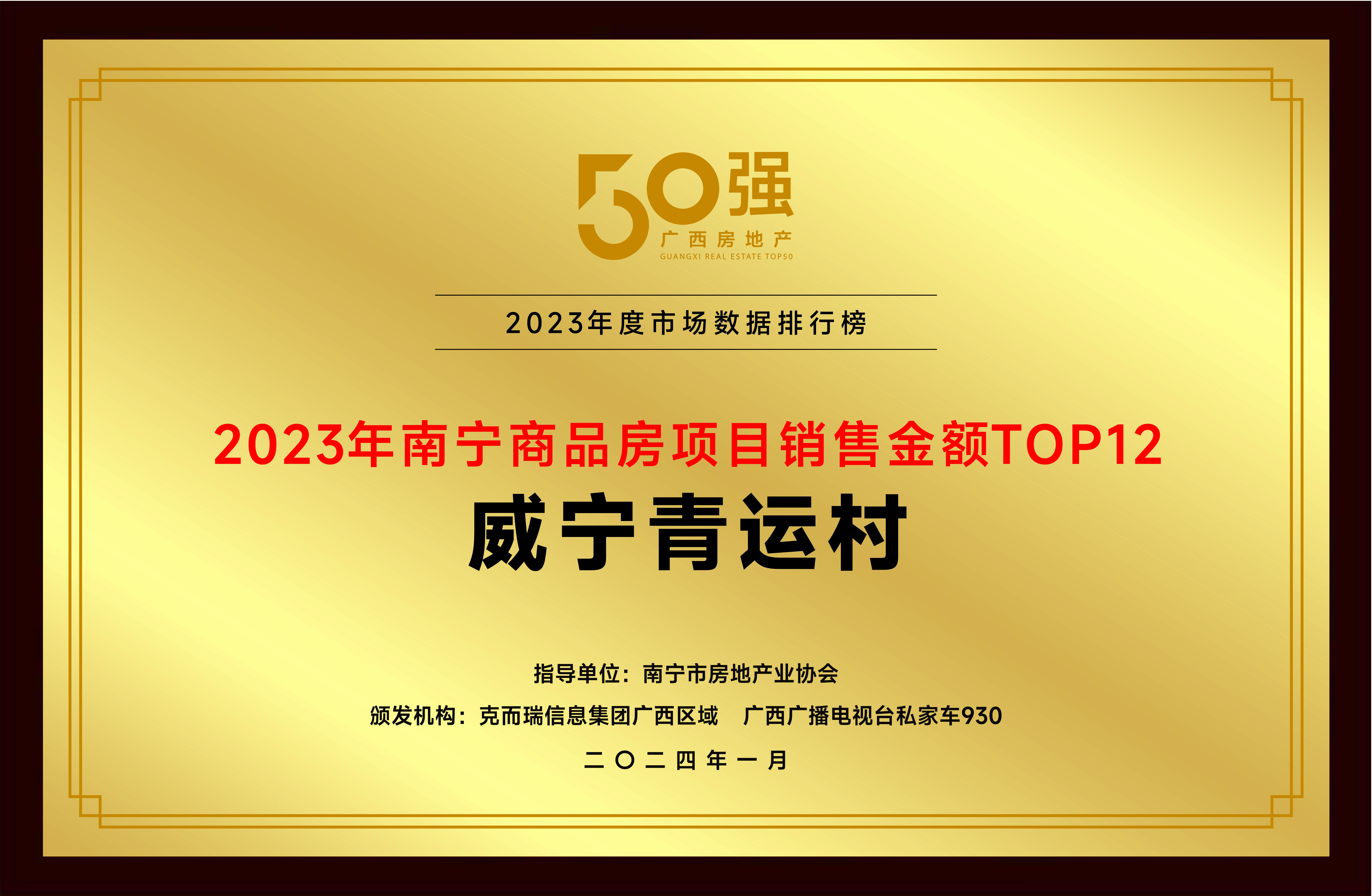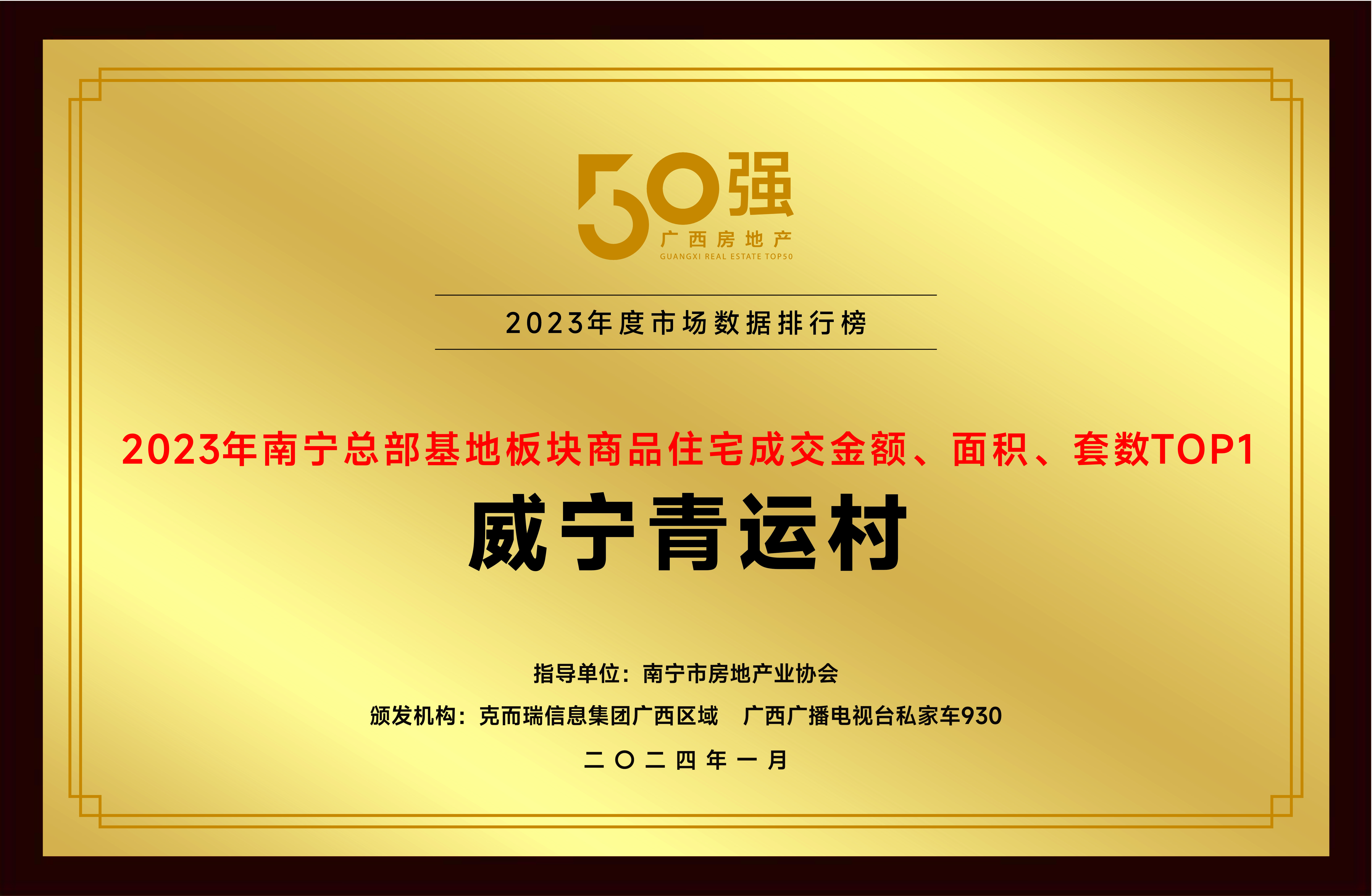 公司所属项目C7(中国)青运村凭借良好的市场口碑,成功脱颖而出,获“2023年广西地产品质标杆项目”“2023年南宁商品房项目销售金额TOP12”“2023年南宁总部基地板块商品住宅成交金额、面积、套数TOP1”大奖,这也印证了C7(中国)青运村项目在市场的高关注度与认可度。