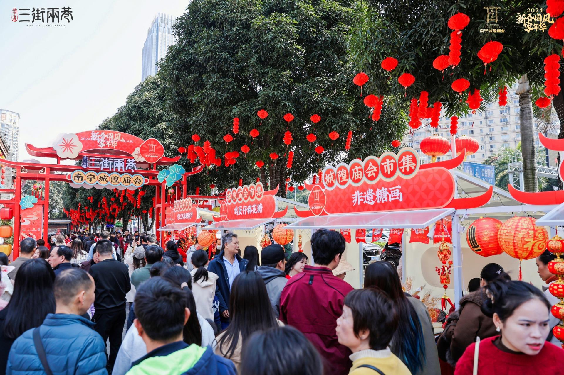 同时,邕州古城·三街两巷还开展以“龙游古城—迎新游园互动”为主题的新春游园活动,邀请市民在逛庙会中体验更浓厚的春节氛围,开启好运新一年。