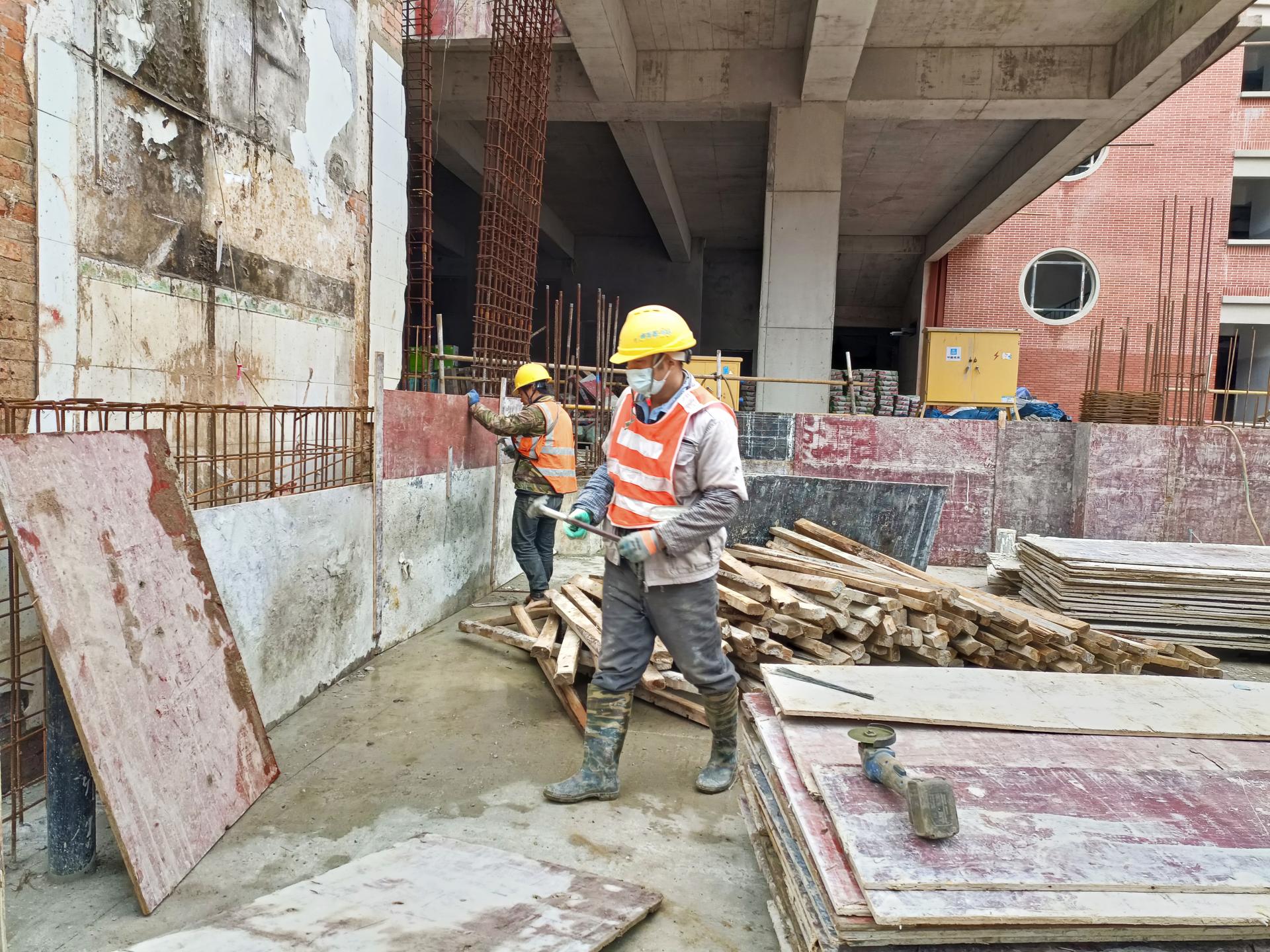 在中山路历史文化街区保护修缮PPP项目工地现场,各施工点位机械轰鸣、工程运输车辆来回穿梭、工人施工繁忙,复工复产正在有序进行。项目公司组织各参建单位,深入生产现场进行全面安全大排查,重点检查大型机械设备、临时用电、施工机具、临边洞口防护、外脚手架、生产设备、机械加工设备状态等内容。目前,钟鼓楼和三角地已完成主体施工,中山路小学地块内的办公楼、综合楼、教学楼已主体封顶并完成砌筑,正在开展装修施工,力争在5月份已移交施工部分完成工程施工。