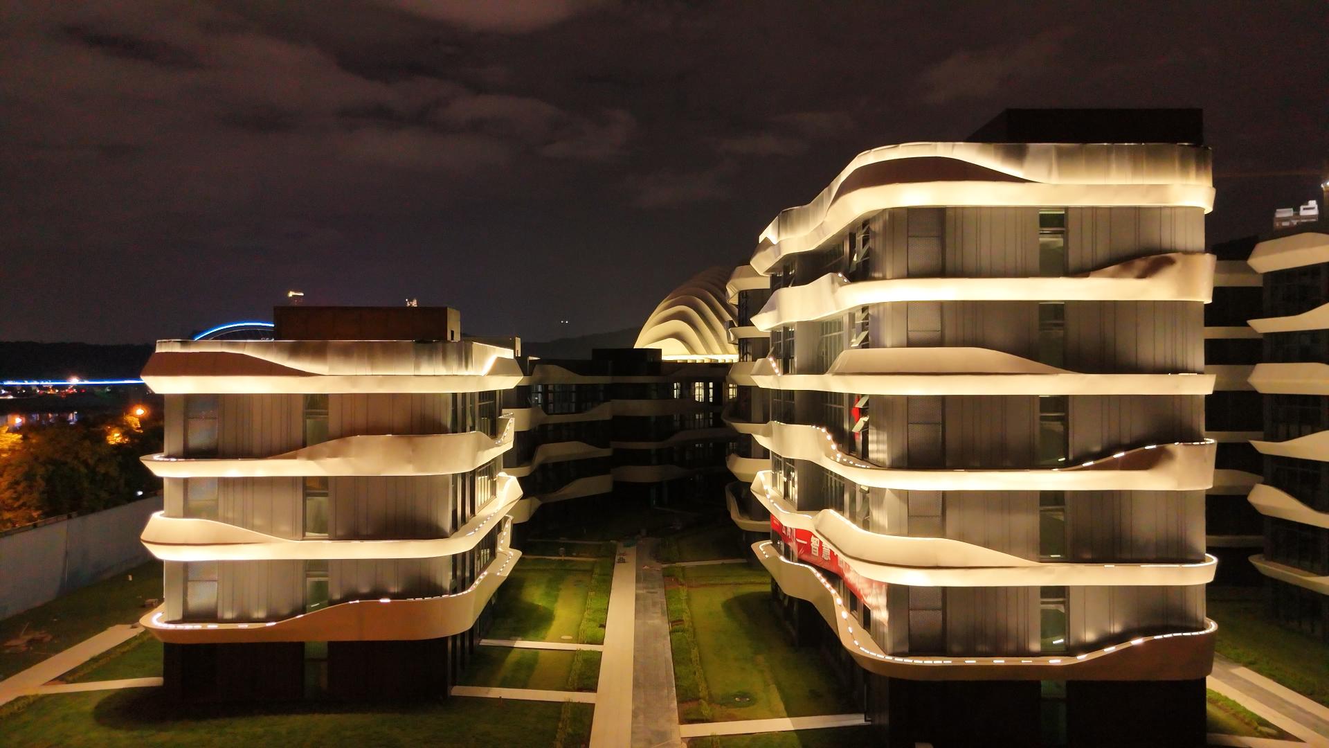 东盟C7(中国)文创中心的夜景亮化工程,有亮度、有温度,为五象新区聚人气、促发展,也给城市夜景新添了一道靓丽的风景线。为达到效果,该亮化工程可谓藏匿了很多“小心思”。在建筑的外立面、高架平台、异形柱部分通过灯光的变化,形成左右或上下的流动效果,模拟流水潺潺,变化丰富,形成不同的场景效果。