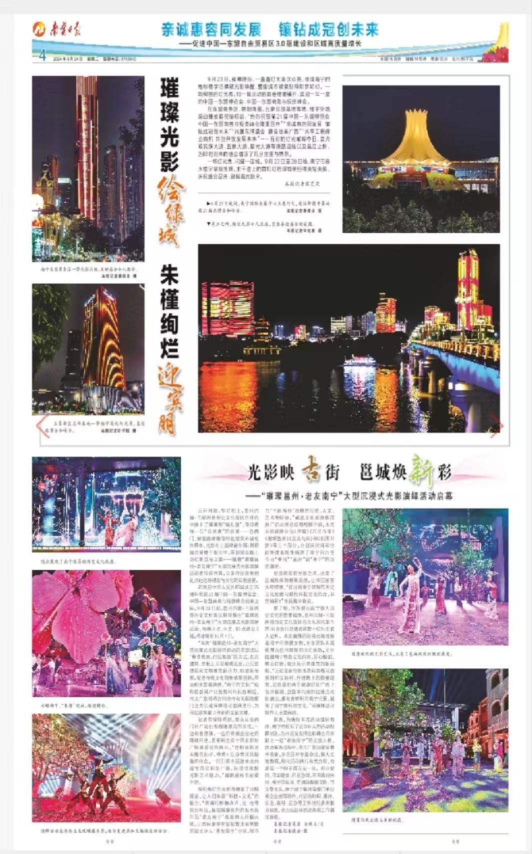 长达15天的“璀璨邕州·老友南宁”大型沉浸式光影演绎活动在国庆长假最后一晚落下帷幕,作为邕州古城·三街两巷历史文化街区首次尝试以“移步换景、行进观演”的方式从仓西门后广场到南宁商会旧址广场进行“沉浸式沿途分节点行进”的崭新演出,从第21届中国—东盟博览会、中国—东盟商务与投资峰会(以下简称东博会和峰会)举办到国庆期间,吸引了众多媒体的广泛关注与深度报道,活动话题度、影响力持续走高。9月23日至10月7日间,全网共计获得新闻曝光报道42条,融媒体直播4场,网络阅读量(含直播观看量)更是高达3500万次,电视媒体触及人群超过1200万人。