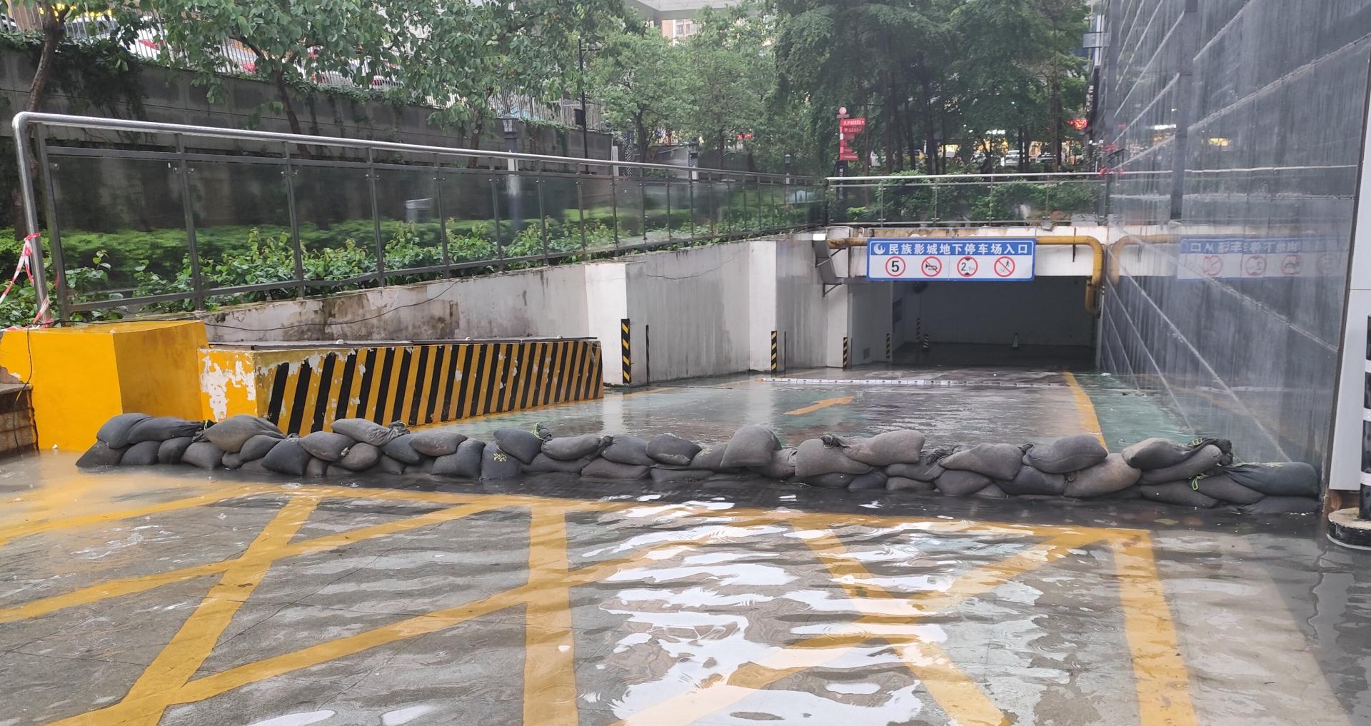 南宁大地飞歌集团通过堆垒防汛沙袋防止积水流入地下室