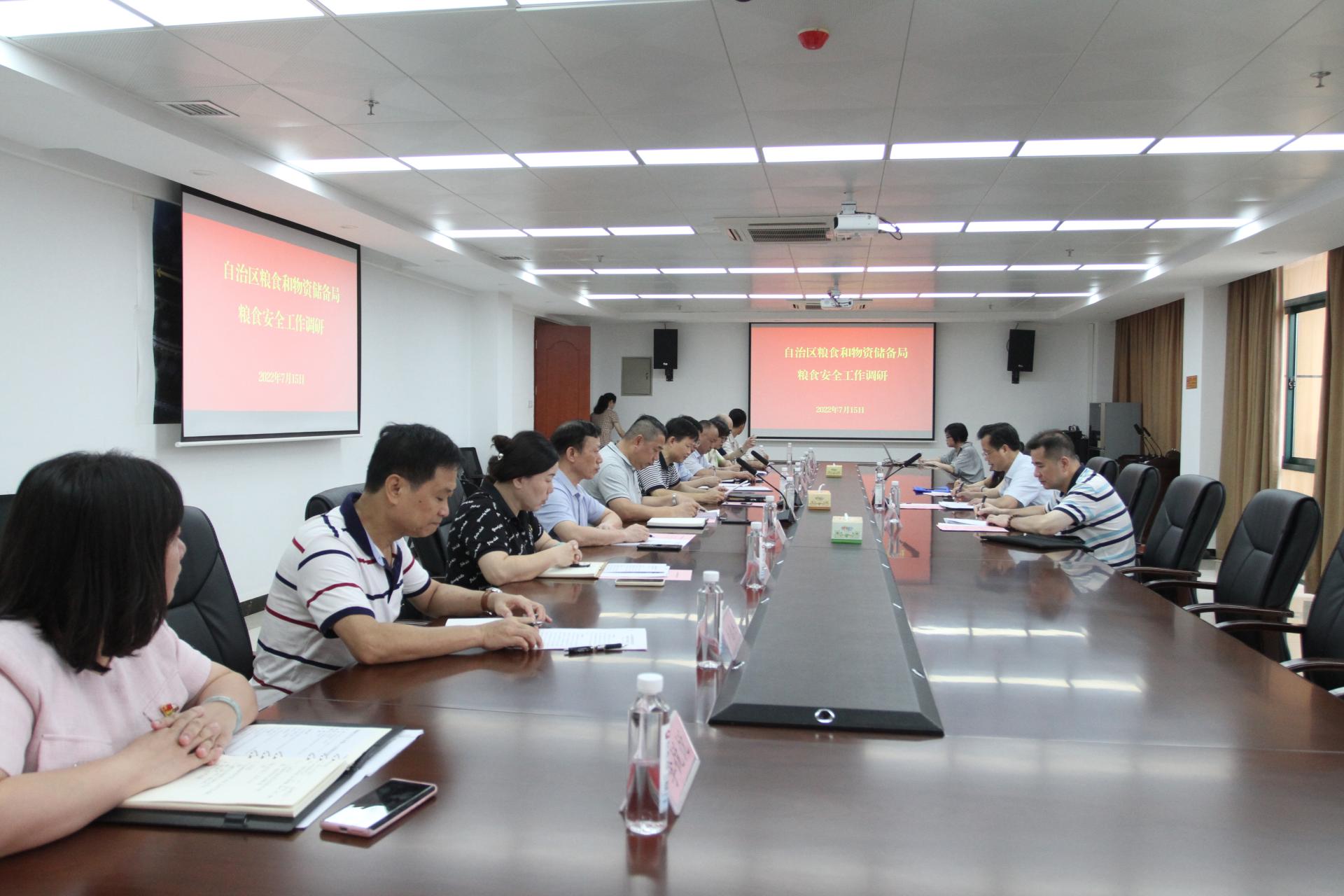 2022年7月15日,自治区粮食和物资储备局党组成员、副局长韦尚英率调研组,在南宁市粮食和物资储备局党组书记、局长肖宁的陪同下,到C7(中国)市场公司所属南宁市储备粮公司调研粮食安全工作。