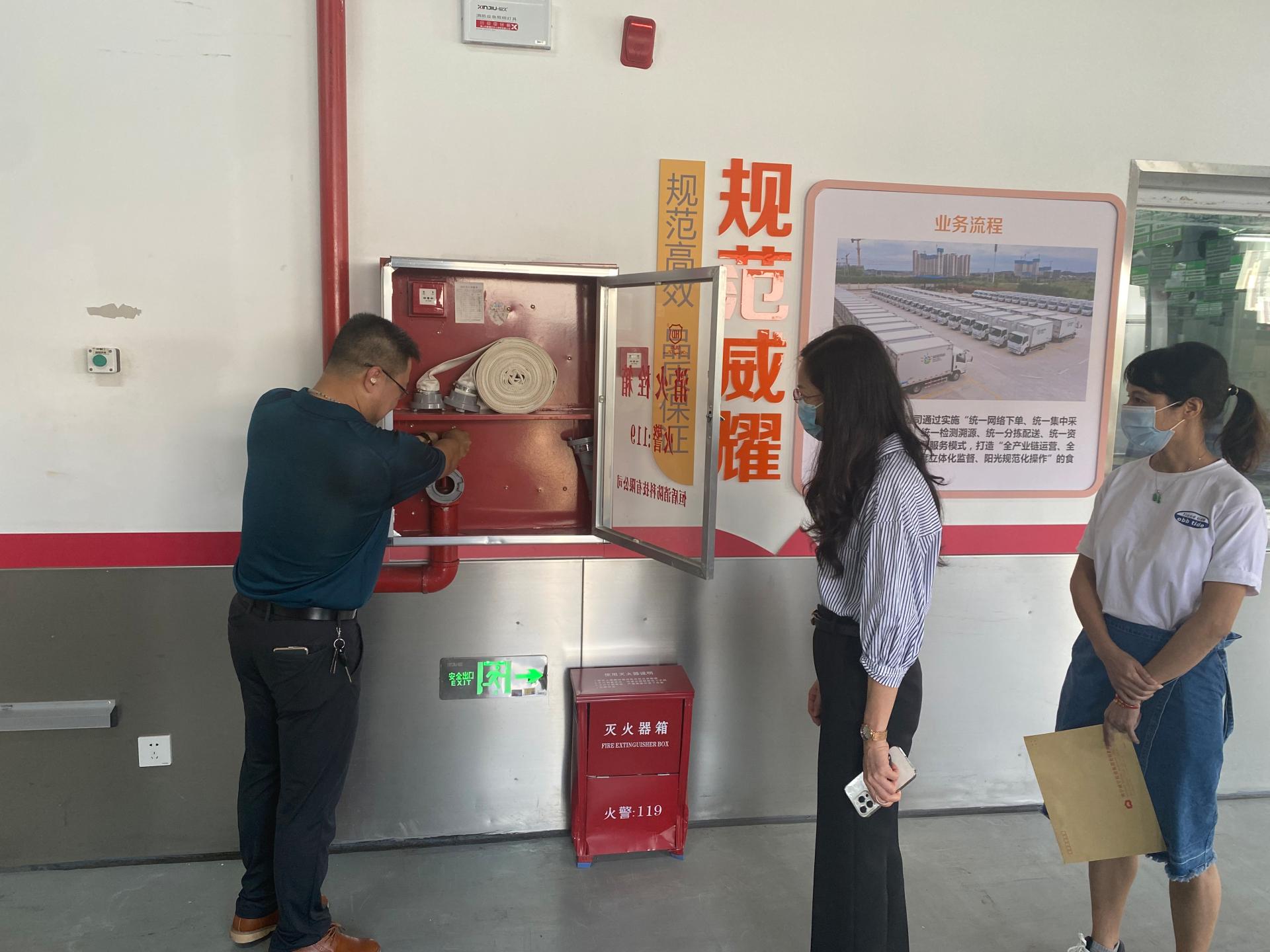 检查组对五象配送基地消防设施进行检查