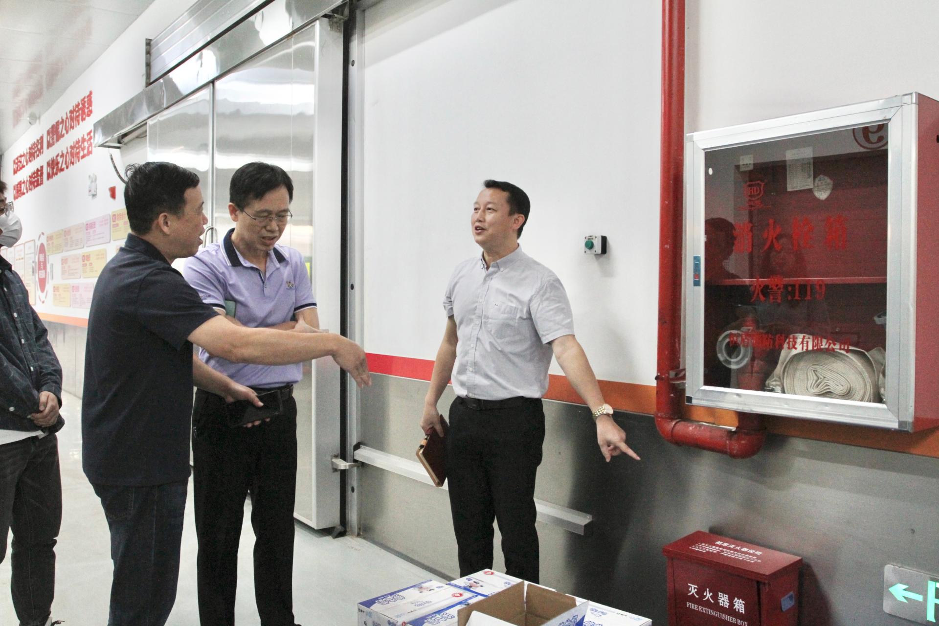 随后,检查组一行实地走访威耀供应链公司仓储、配送等区域,详细了解学校集采集配业务及安全管理制度上墙情况,强调威耀供应链公司要高度重视食品安全和交通安全,守好出口安全关,并检查现场消防安全设备设施配备情况。期间,谢雄胜在现场亲自测试灭火器消防水带的正常使用,并就灭火器地面标识等提出改进建议。