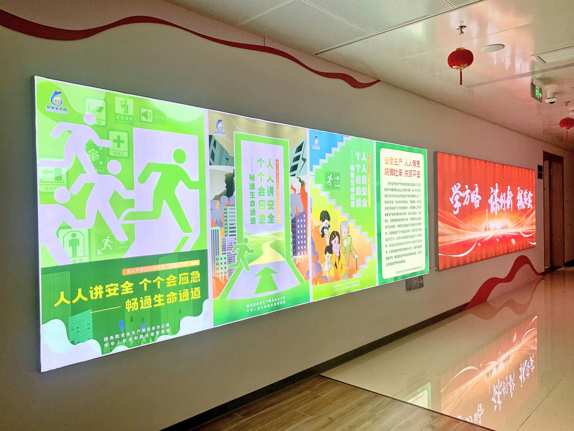 公司利用宣传平台滚动播放2024年全国“安全生产月”主题宣传片,并制作“人人讲安全 个个会应急——畅通生命通道”主题宣传海报,营造良好的安全宣传氛围。各监管单位结合实际,督促各在建项目施工单位通过设置安全宣传栏、悬挂宣传标语、张贴宣传海报、开展班前安全教育和安全技术交底等形式,向建筑工人宣传普及安全常识,扩大安全宣传覆盖面。