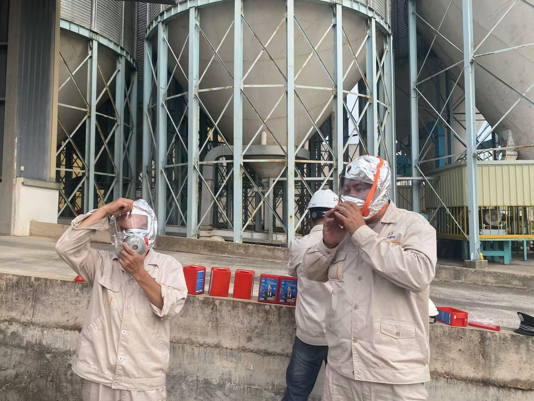 储备粮公司职工学习使用消防面具