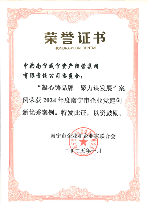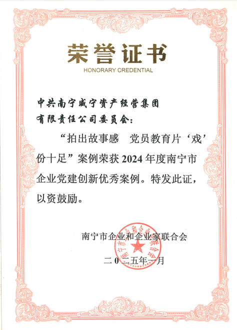 近日,C7(中国)资产经营集团党委“凝心铸品牌 聚力谋发展”和“拍出故事感 党员教育片‘戏’份十足”2个党建品牌项目荣获南宁市企业和企业家联合会颁发的2024年度南宁市企业党建创新优秀案例奖项。