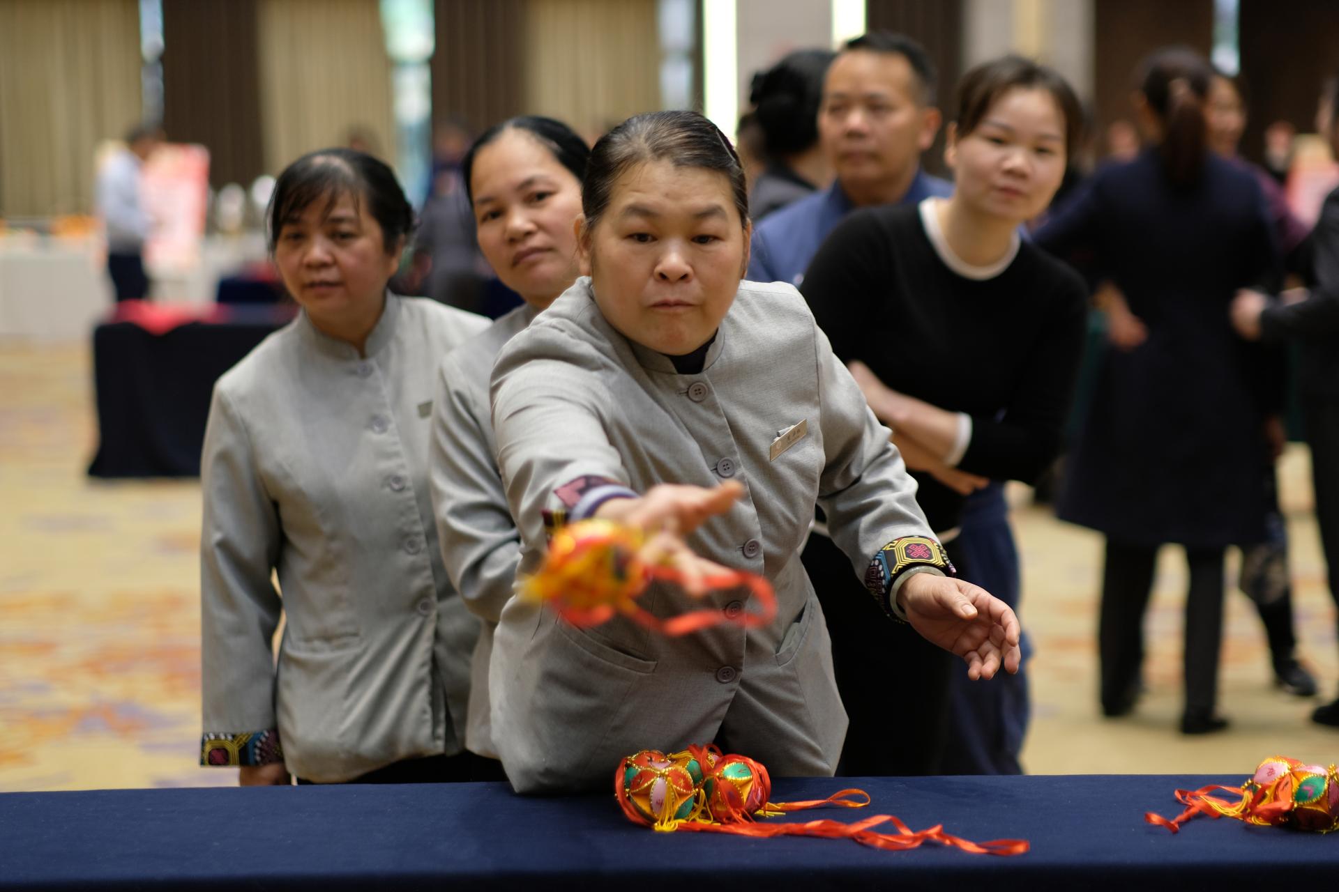 本次游园会吸引了近120余名员工踊跃参与,活动现场洋溢着节日的喜庆气氛,各类趣味盎然的游戏让人与人之间的关系更为紧密。本次活动特别设计了9个趣味十足的主题互动游艺区,包含“投壶” “吸福” “福气套圈” “蒙面敲锣” “母鸡下蛋”“壮乡绣球”和“垃圾分类”等内容,促进了参与者之间的交流与互动。手工制作区域同样人气爆棚,在工作人员的指导下,员工们亲手制作元宵花灯,将对新一年的美好祝福融入到一件件手工艺品中。