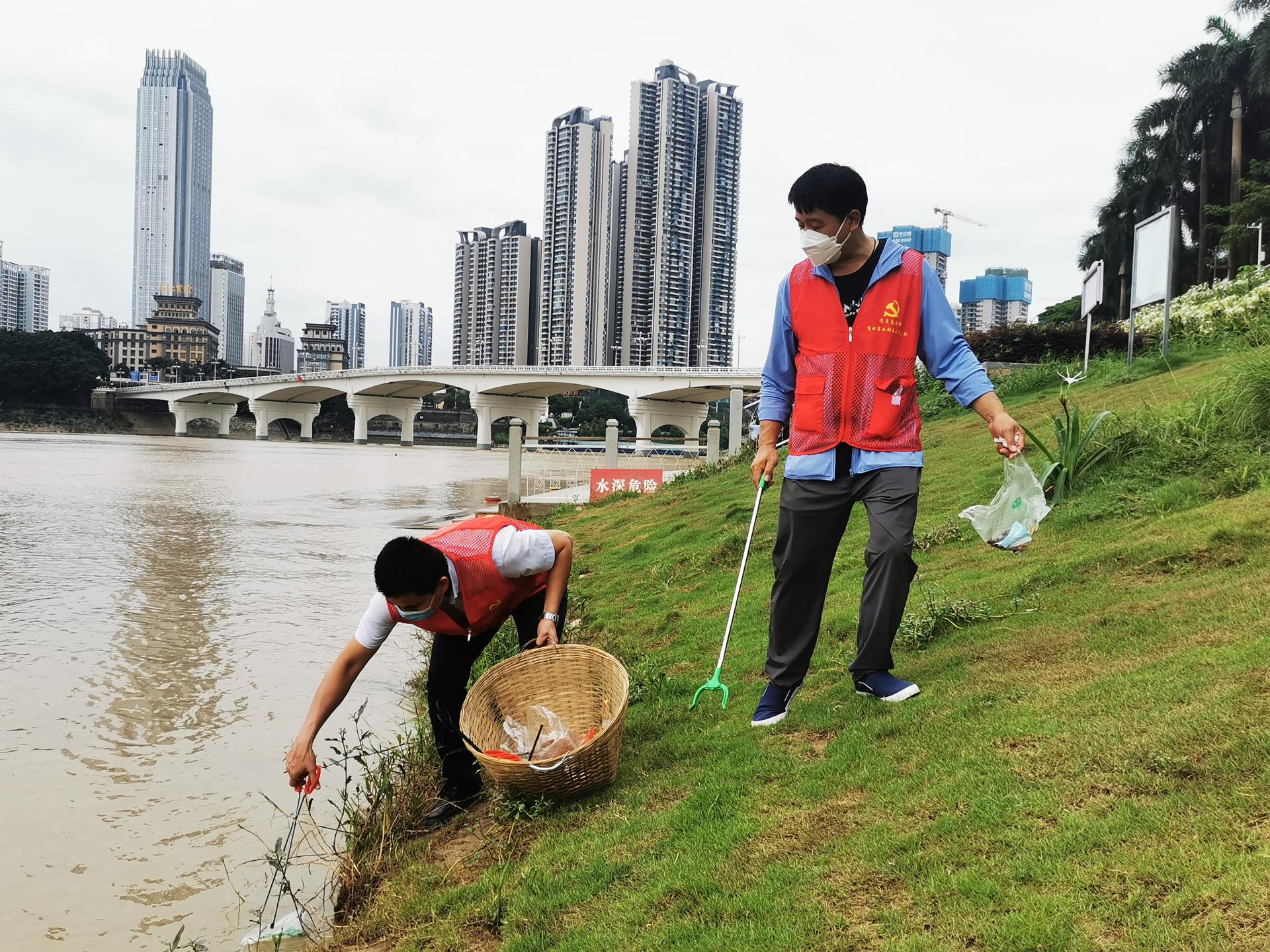 活动中,党员志愿者自带工具,分工协作,充分发扬吃苦耐劳精神,克服暑伏天气的潮湿闷热,尽管汗流浃背,但丝毫阻挡不了大家一心守护“绿水青山”的热情,大家仔细清理河道沿线的果皮、纸屑、塑料袋、矿泉水瓶等生活垃圾,并向河堤附近来往的行人、游泳爱好者和垂钓者宣传河道保护治理及生活垃圾分类小知识,呼吁市民群众参与到保护河道环境中来,用实际行动守护了邕江母亲河的百里秀美。