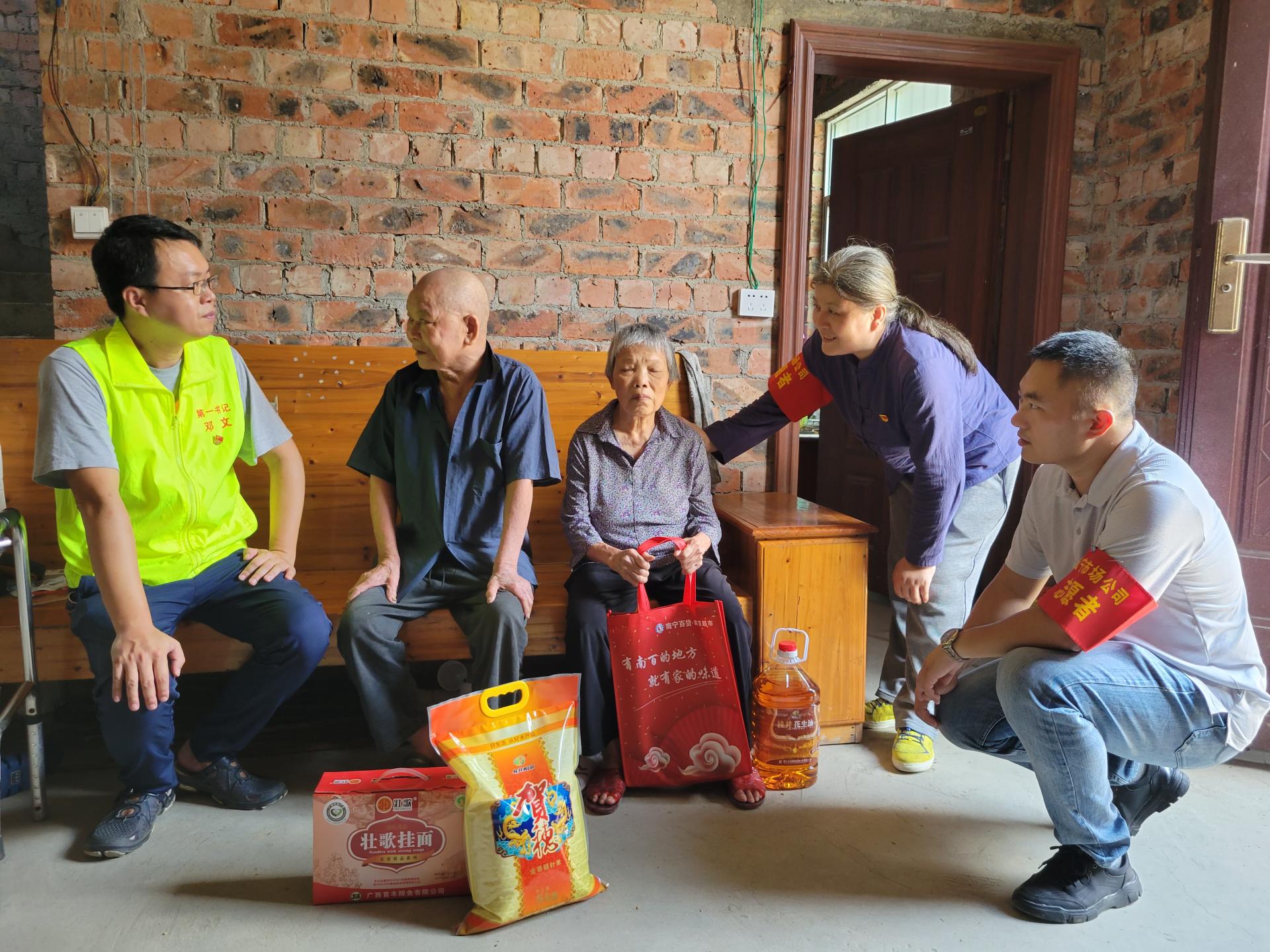 活动中,志愿者还带着米、油、面条等慰问品走访慰问了寨鹿村防返贫监测户,每到一户,志愿者都认真了解监测户生活居住条件,与他们面对面交谈,了解他们的家庭收入、健康状况和生活开销等情况,耐心听取他们的困难、生产生活中的打算和诉求,帮助监测户开展卫生清扫服务。