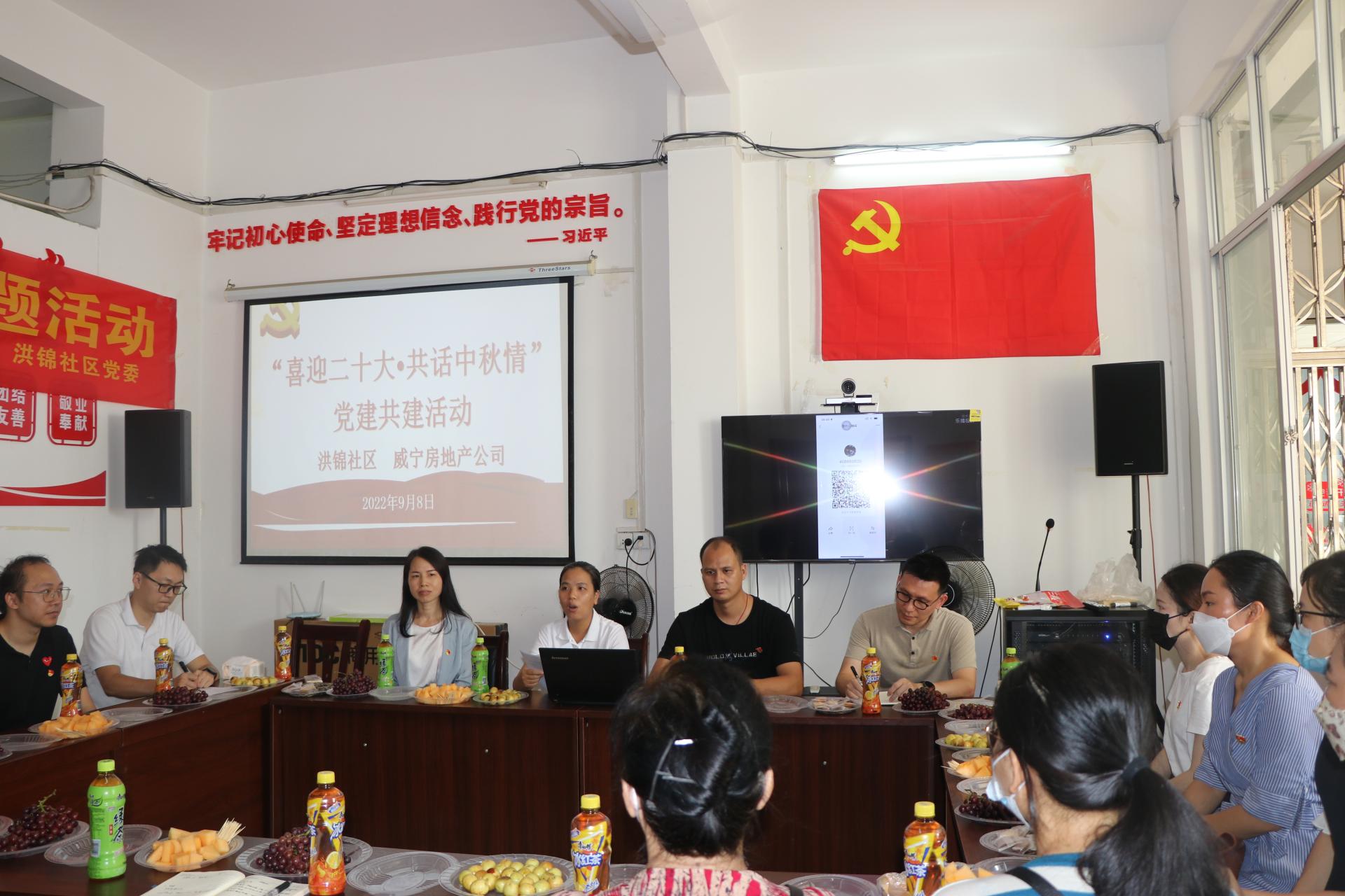 2022年9月8日上午,C7(中国)房地产公司党委与那洪街道洪锦社区党委开展“喜迎二十大•共话中秋情”党建联建系列活动,来自C7(中国)房地产公司的党员、社区党员、志愿者代表和群众代表共30多人参加活动。