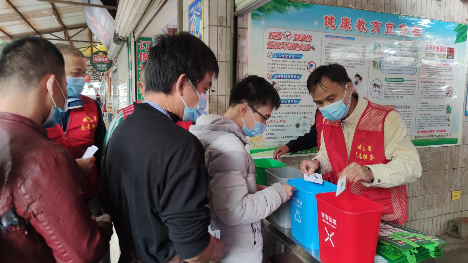 活动现场,党员志愿者化身“生活垃圾分类宣讲员”,走摊入铺宣传了解市场经营户对垃圾分类的意见建议,向前来市场购物的市民顾客发放垃圾分类宣传册,讲解生活垃圾的分类类别、投放方式以及有害垃圾的处理方法,同时开展了垃圾分类知识竞答、模拟投放益智游戏活动,通过寓教于乐的方式,号召大家积极学习、掌握分类知识,并正确引导身边的人树立垃圾分类意识。