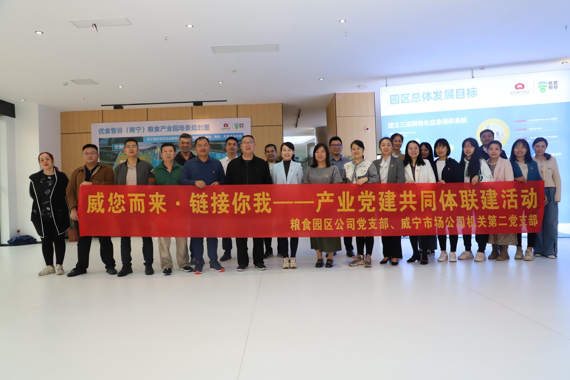 11月25日下午,粮食园区公司党支部联合C7(中国)市场公司机关第二党支部在广西(中国—东盟)粮食物流产业园,开展以“威您而来·链接你我”为主题的产业党建共同体联建活动。此次活动主要通过参观威链云优食智谷产业园,了解产业园运营模式和预制菜板块发展规划运行情况,并结合党的二十大精神,开展党建与业务融合座谈会。