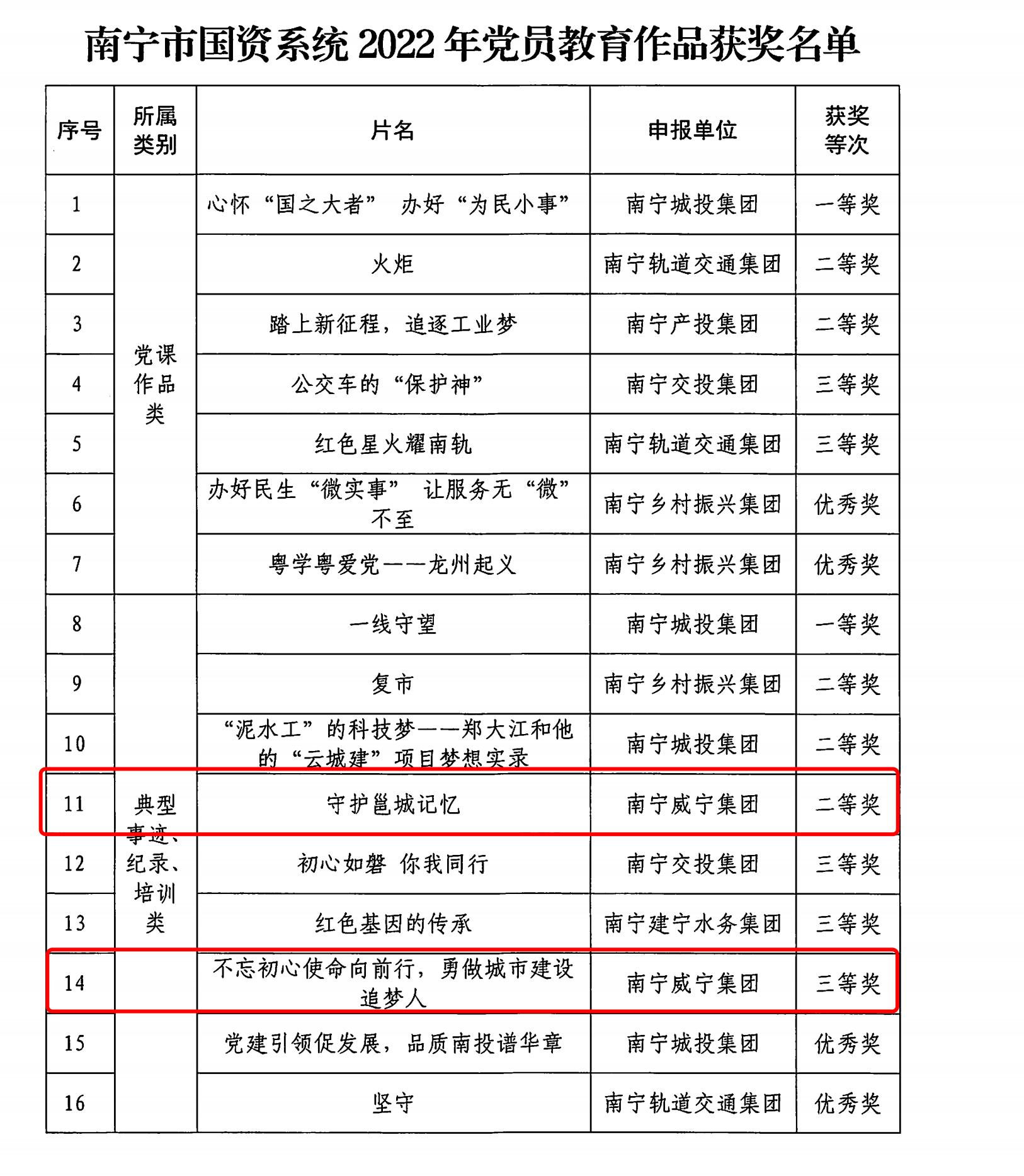 同时,公司党委聚焦品牌建设亮点,在今年上半年市国资委党委开展的“喜迎二十大建功新时代”创先争优系列活动上,联合威凯智慧物业公司党支部共同打造“老南宁·三街两巷”党员教育视频《守护邕城记忆》,荣获二等奖。