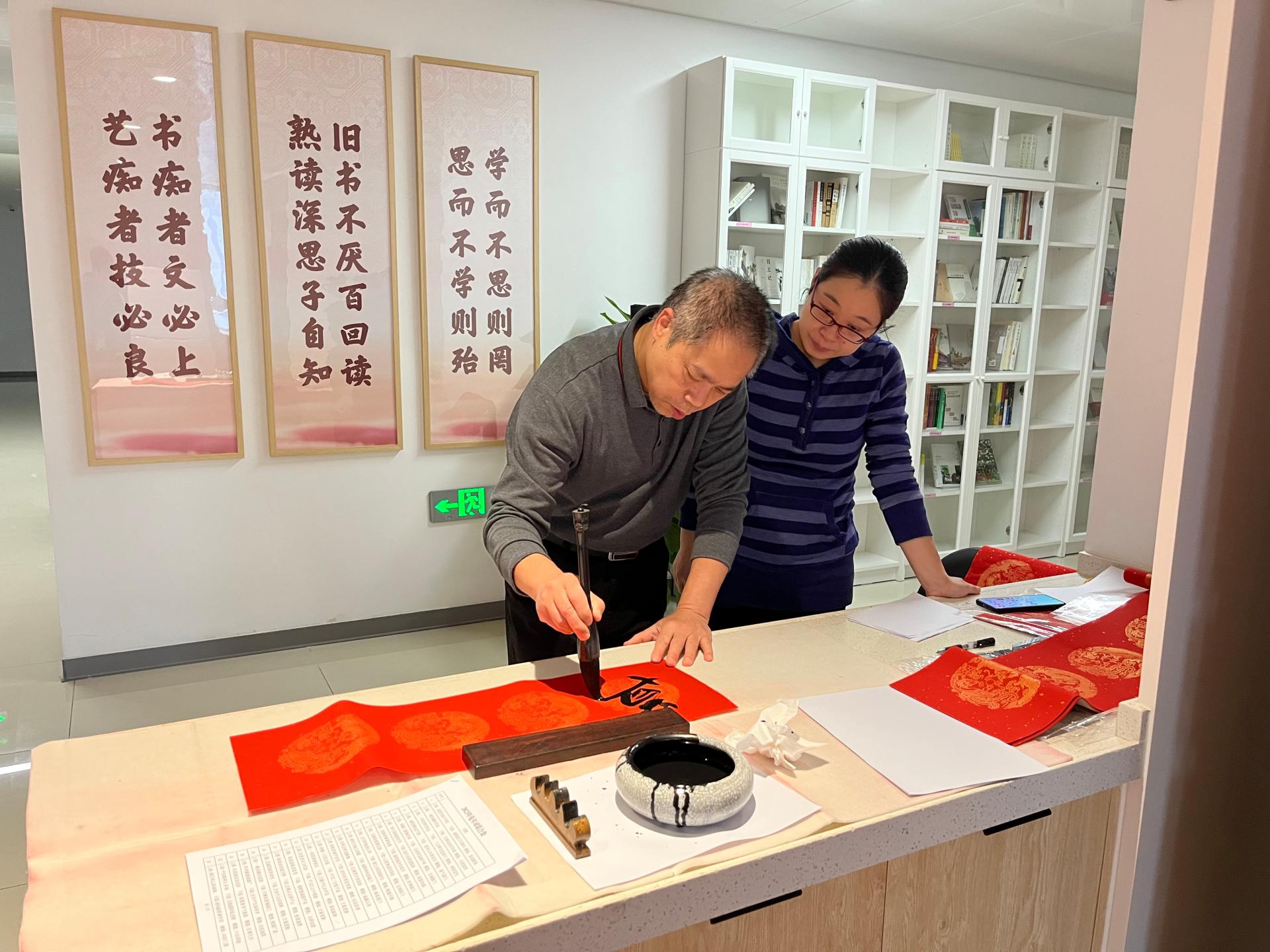 一幅幅春联映红笑脸,一个个福字温暖人心。每一副春联都饱含着浓浓的祝福,还融入党的二十大精神内容,结合祖国繁荣和民族团结的美好祝愿,把对员工的新春祝福与关爱表达在笔墨中,在体现传统“年味”的同时,又带有浓郁的家国情怀。