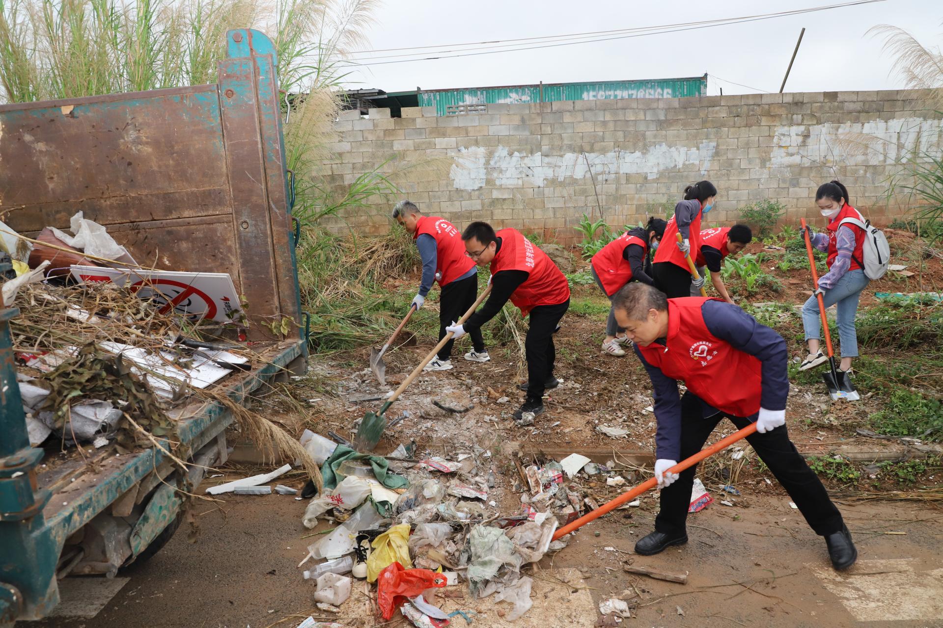 3月25日上午,c7网站机关党总支联合粮食园区公司党支部到经开区那洪街道办北部湾社区开展“全民志愿行共创卫生城深入开展爱国卫生运动”主题活动。集团党委副书记马超毅、集团纪委书记韦登香带领集团公司机关党总支和粮食园区公司党支部的党员和志愿者共58人参加活动。