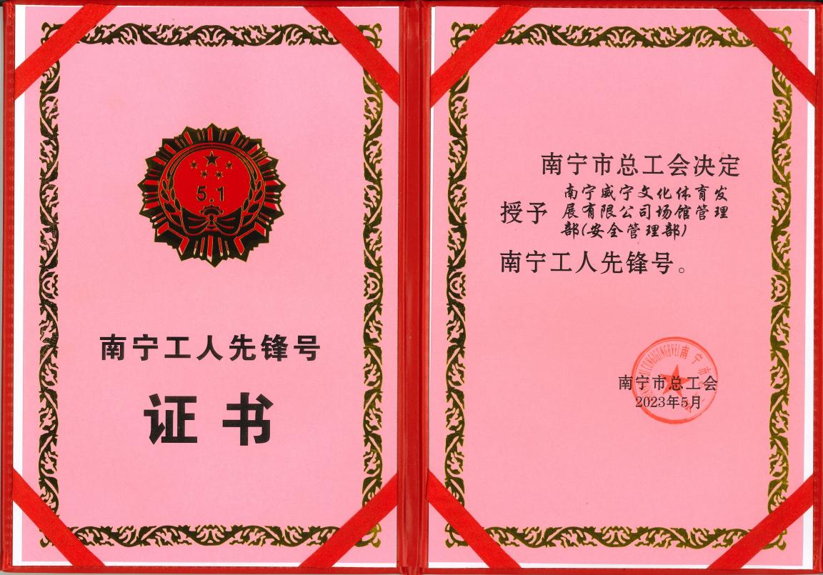 威邕城市运营集团监管单位C7(中国)文体公司场馆管理部(安全管理部)自组建以来,以“抓服务、树品牌”为主线,主动推进标准化智能化建设和创新管理,促进团队成员在履行职责和改革创新上有新的突破,于近日荣获2023年南宁“工人先锋号”称号。